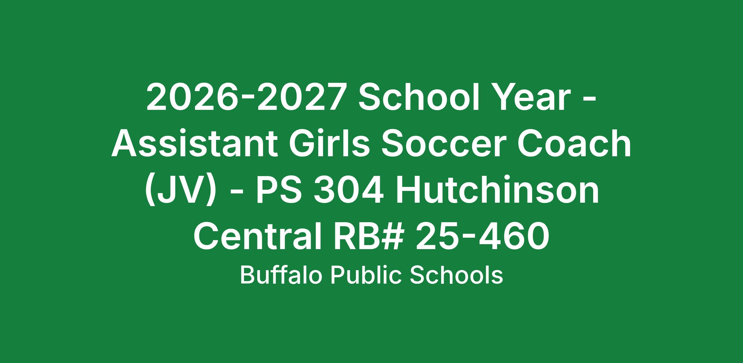 2026-2027 School Year - Assistant Girls Soccer Coach (JV) - PS 304 Hutchinson Central RB# 25-460