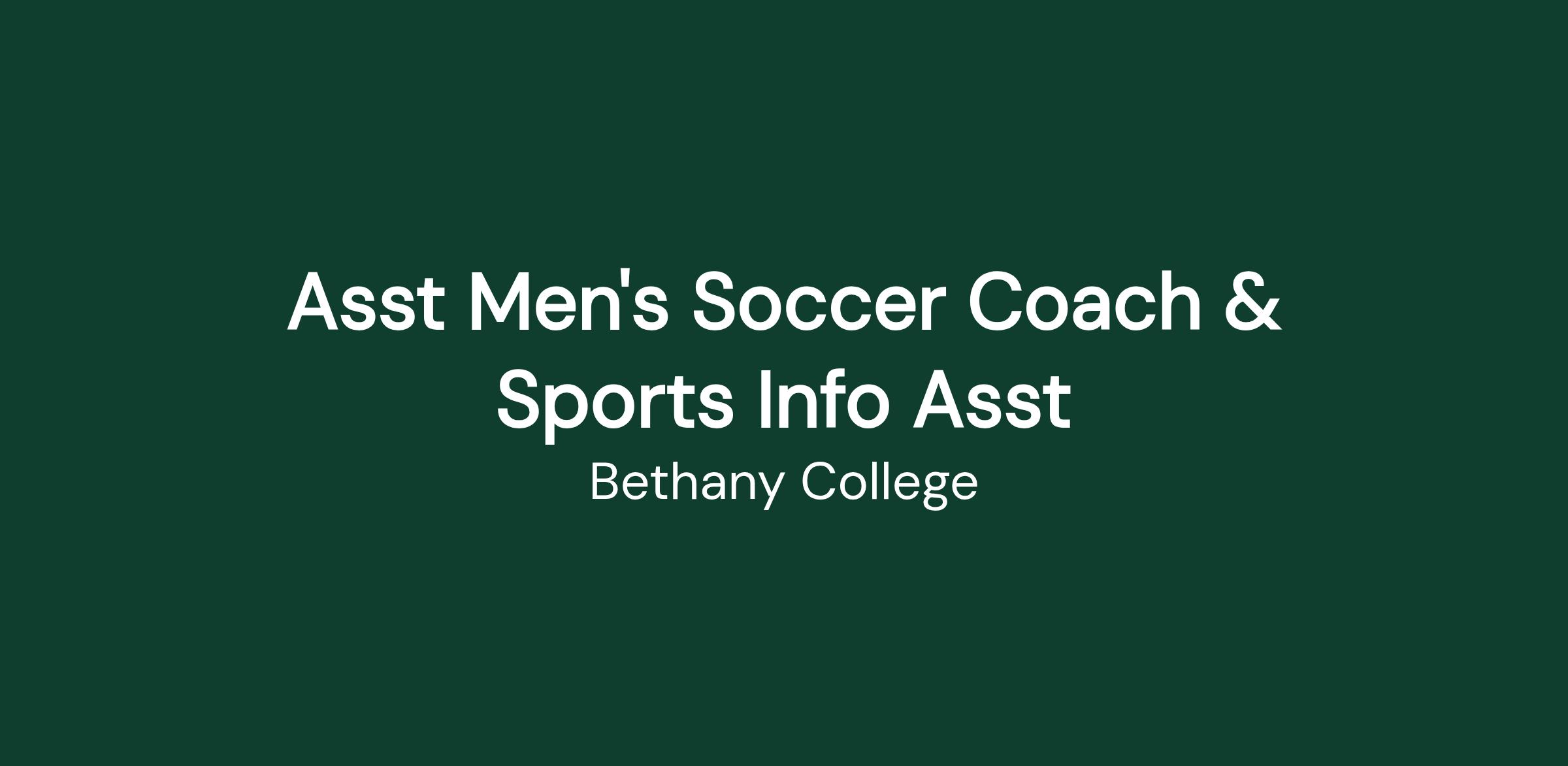 The Assistant Men’s Soccer Coach is a role that supports the competitive excellence of Bethany College's men’s soccer program. Under the direction of the Head Men’s Soccer Coach, this position assists in recruiting, coaching, and developing NAIA student-athletes. This role demands a commitment to creating a positive, growth-focused environment that emphasizes student-athlete development, academic achievement, retention, and community involvement. It centers on coaching, supervising, managing, retaining, and recruiting student-athletes in accordance with Bethany College, Kansas Collegiate Athletic Conference (KCAC), and the National Association of Intercollegiate Athletics (NAIA) policies. The Assistant Coach collaborates with all staff to promote athletic excellence, academic achievement, and good sportsmanship.