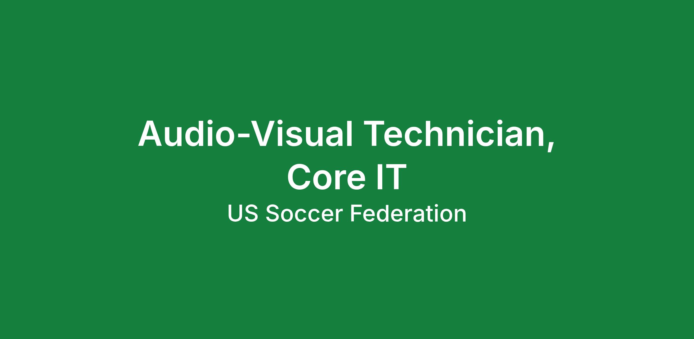 We are looking for an Audio-Visual Technician, Core IT to join our growing IT team. As a member of the IT team, you will be responsible for maintaining the audio-visual infrastructure for the organization. You will provide technical support to U.S. Soccer’s workforce onsite and remotely, as required.