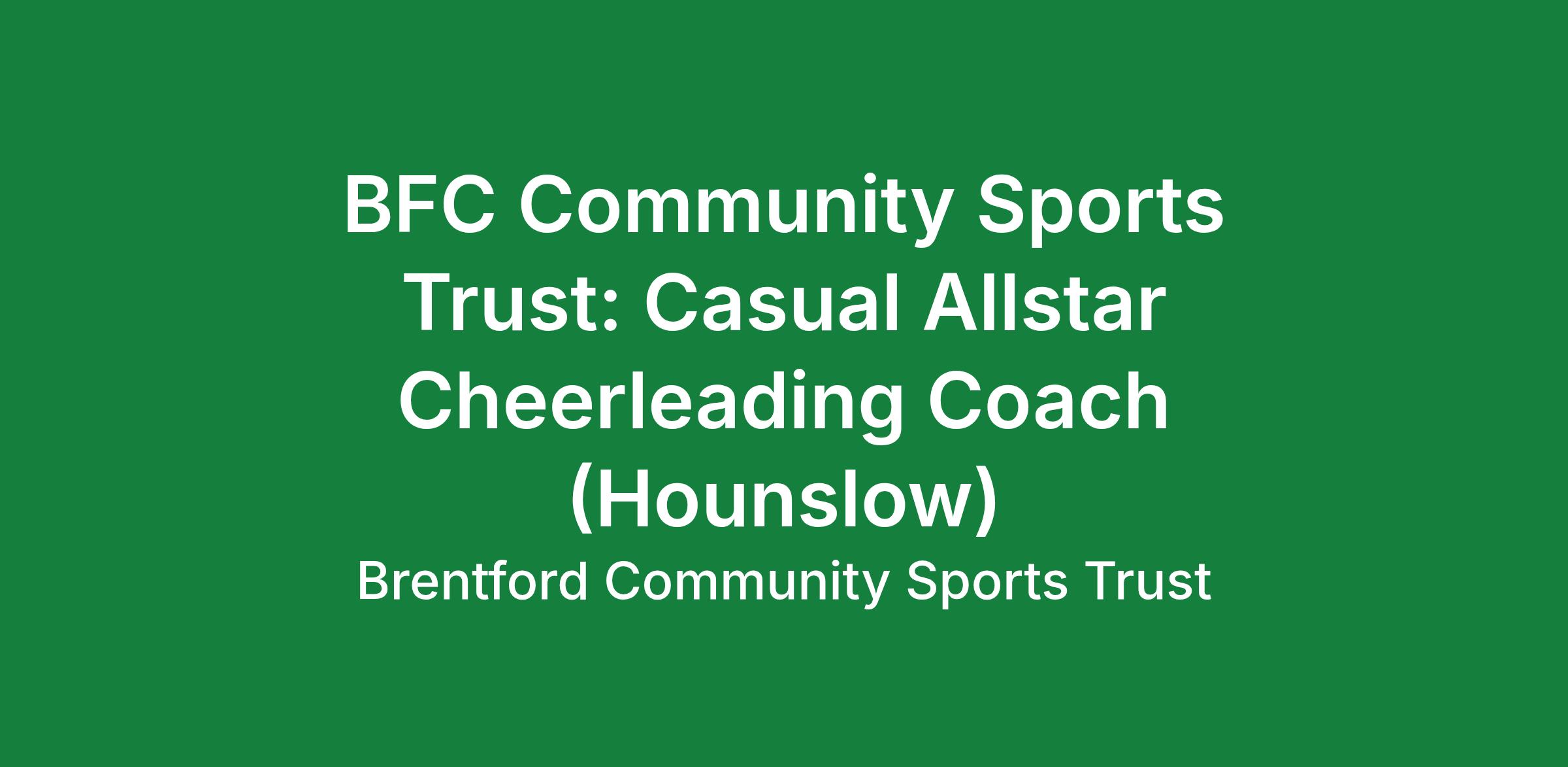 Job Title: Allstar Cheerleading Coach (Monday, Friday & Sunday – Hounslow)