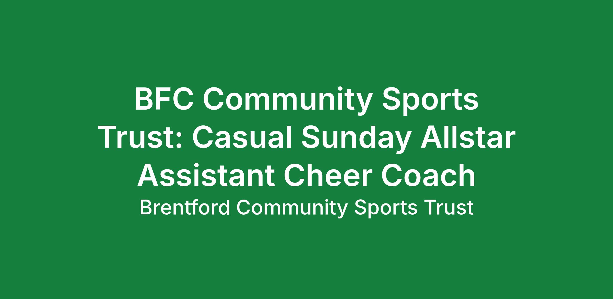 Job Title: Casual Allstar Assistant Cheer Coach (Sunday – Hounslow - Osterley)