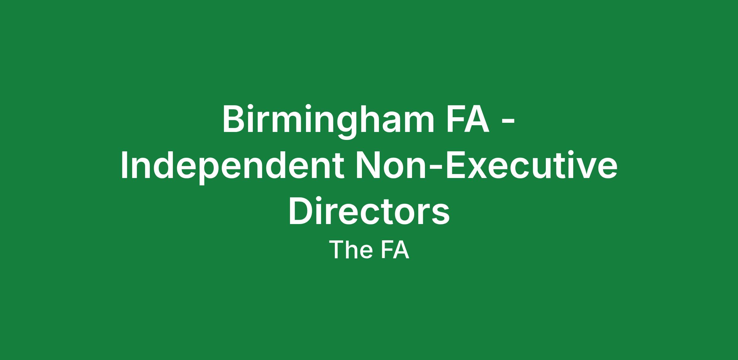 Birmingham County FA is recruiting for 3 Independent Non-Executive Directors specialising in the following areas: