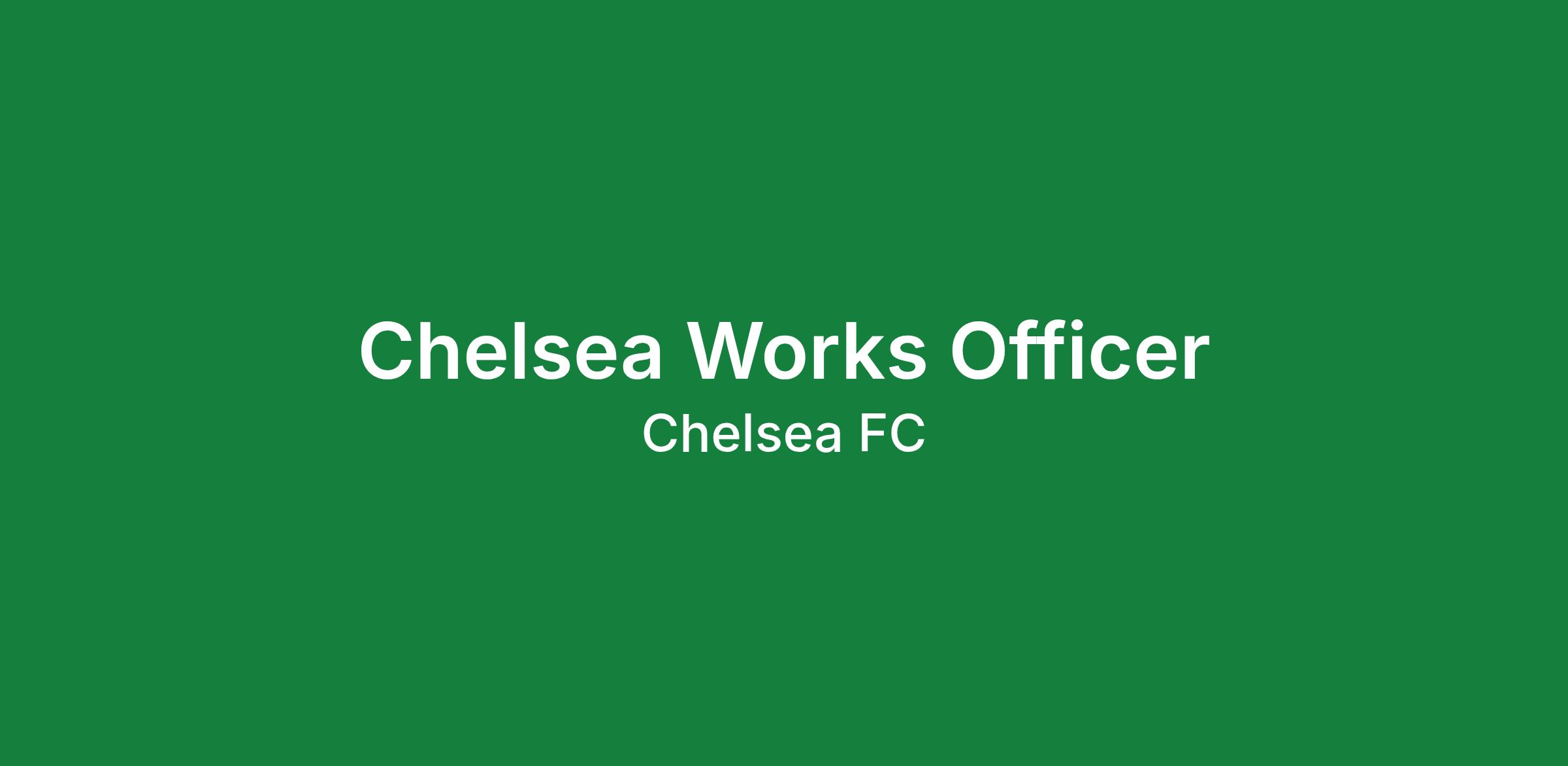 JOB TITLE: Chelsea Works Officer (Premier League Foundation Programmes) DEPARTMENT: Education & Innovation, Chelsea FC Foundation LOCATION: Stamford Bridge (with regular delivery at educational establishments throughout the week in London and Surrey Sch...