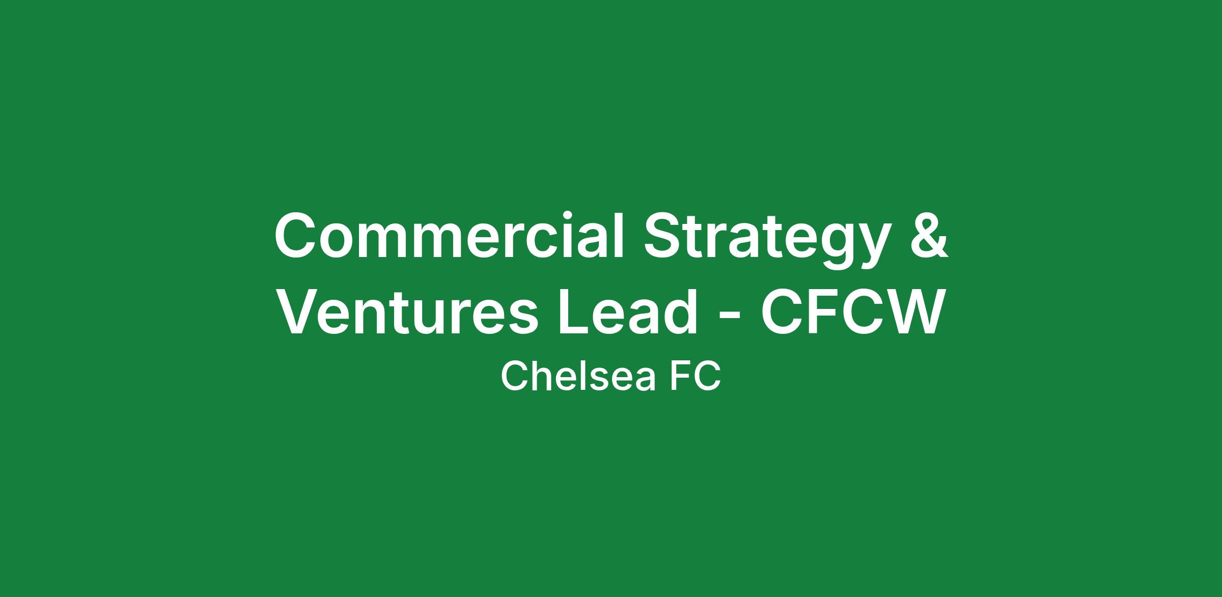 JOB TITLE: Commercial Strategy & Ventures Lead - CFCW DEPARTMENT: Commercial LOCATION: Stamford Bridge CONTRACT: Permanent, Full Time DIRECT REPORTS: None initially, with expectation of team growth over time The Role This is a pivotal role at the heart ...