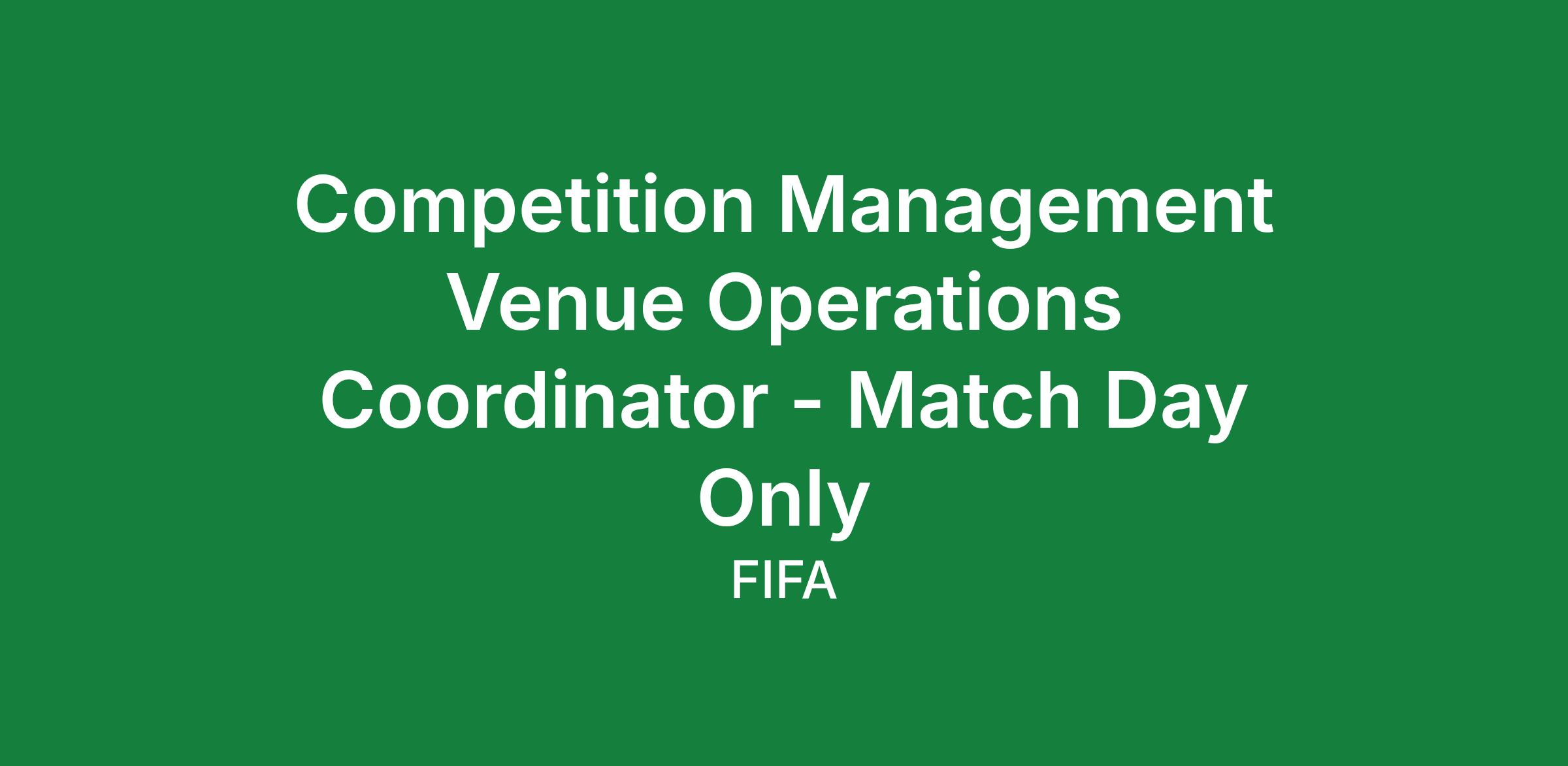 Reporting organisationally to the Venue Competition Manager, the Venue Competition Coordinator will be a key member of the FIFA26 Competition Management team, and work in close collaboration with the FIFA Match Coordinator, the Venue Management team, Stadium Authority, Logistics, Pitch Management, Team Services, Catering, Transportation and other key individuals responsible for delivering all operational tasks at the specific Venue, where he/she has been appointed.