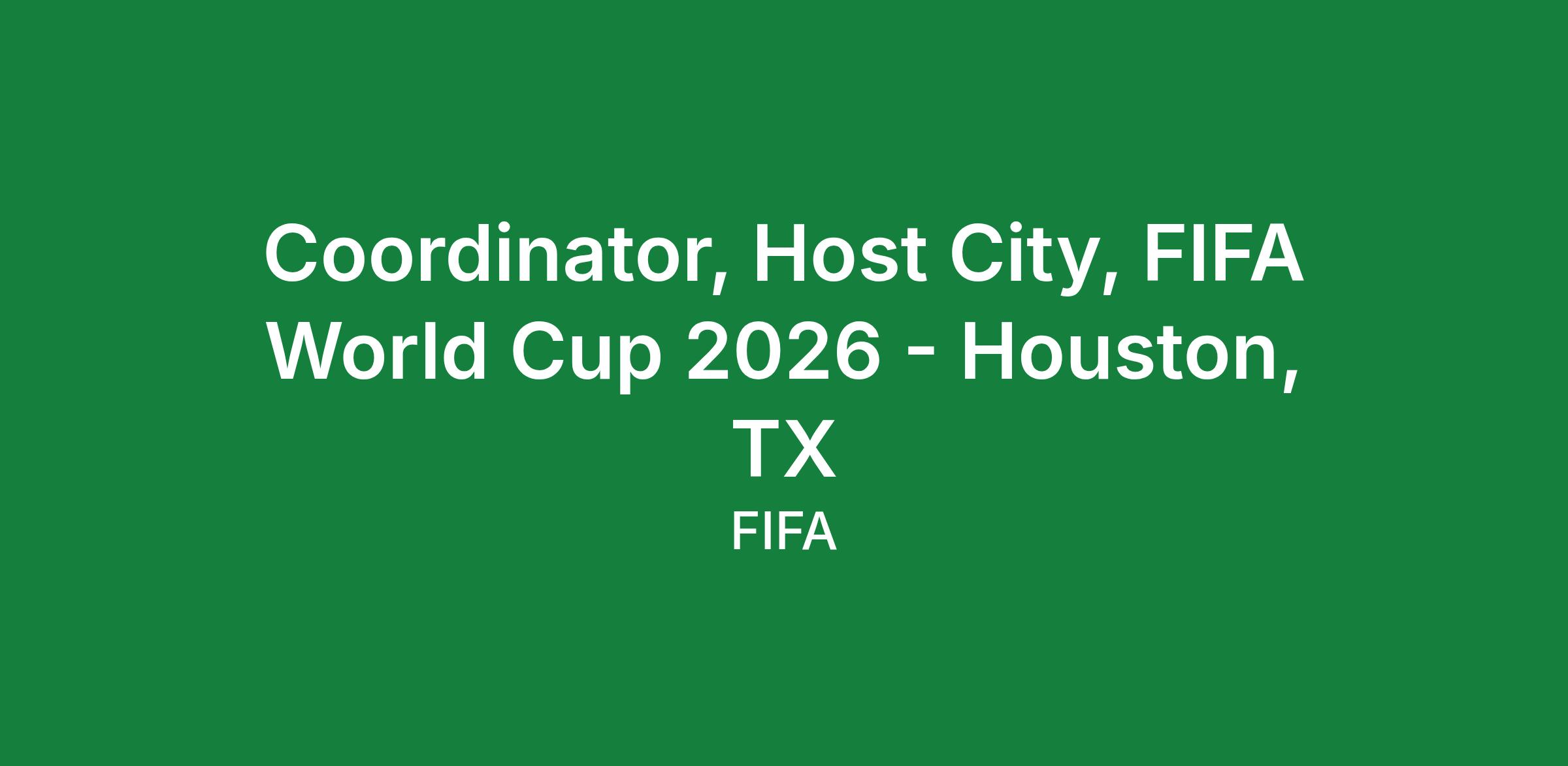 Coordinator, Host City, FIFA World Cup 2026 - Houston, TX