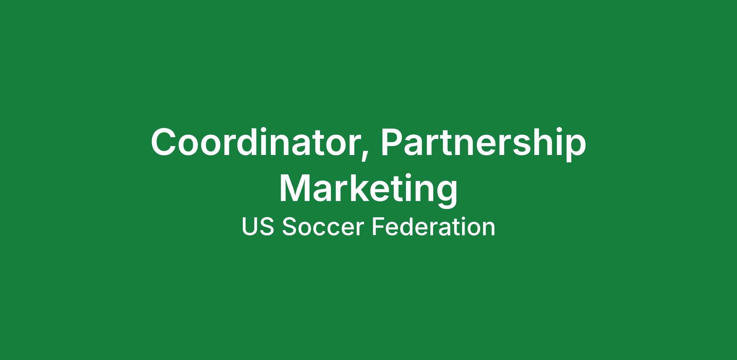 U.S. Soccer is seeking a Coordinator, Partnership Marketing to join our industry-leading team and help drive the growth of soccer in the United States. This individual will be a key contributor within U.S. Soccer’s growing commercial team and an important driver in the relationship between the Federation and its current and potential strategic partners. The coordinator will be keenly focused on driving partner-specific commercial value among its roster of blue-chip partners. The coordinator will collaborate with the balance of the U.S. Soccer commercial team to build the U.S. Soccer brand, engage fans, and deliver results.