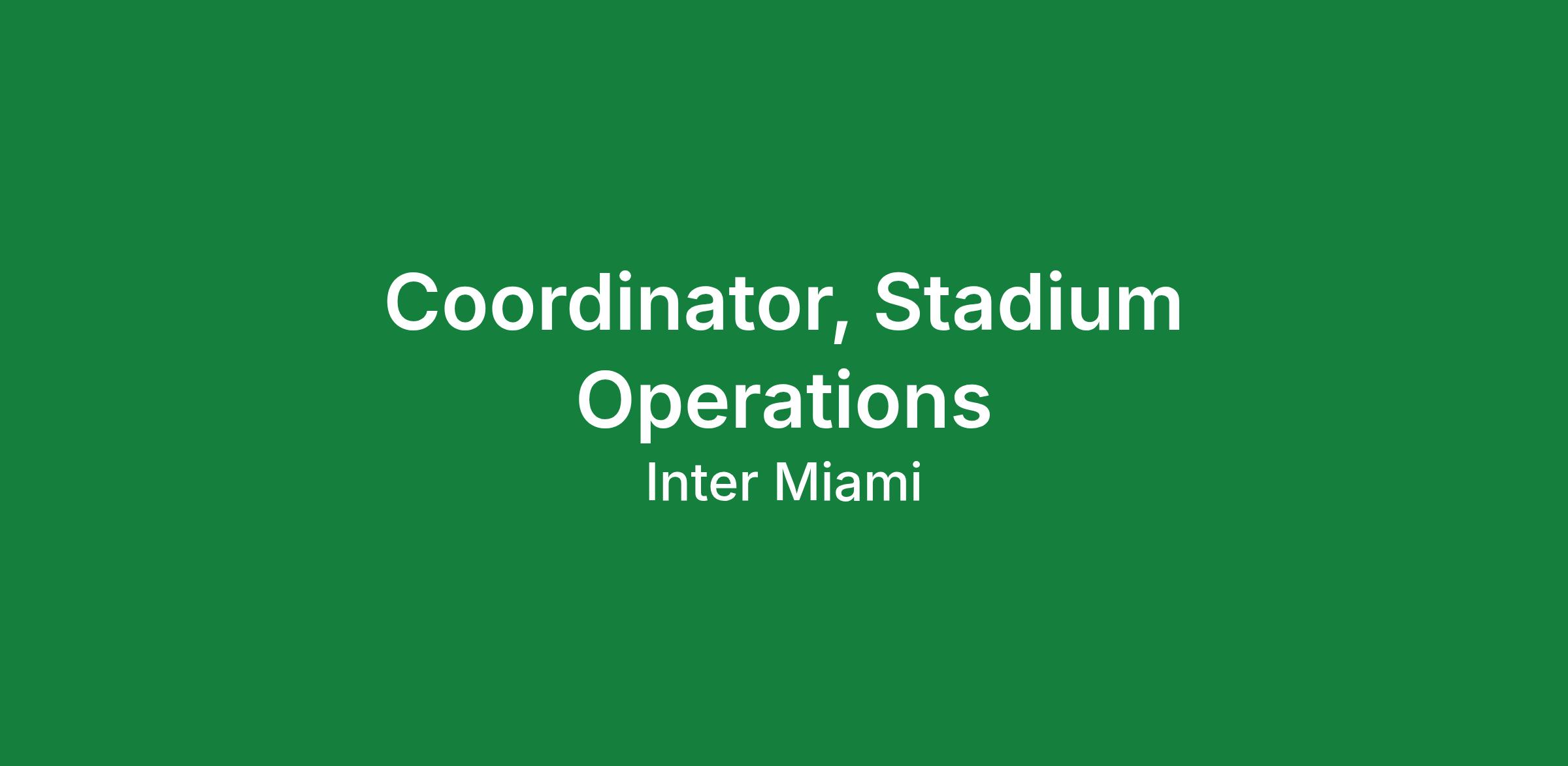 Position Summary: The Coordinator, Stadium Operations is responsible for assisting the stadium operations team with all necessary set ups and breakdowns for events at IMCF Stadium in Fort Lauderdale and FL Blue Training Facility, and ensuring all functions and event preparations are executed seamlessly. This role requires assisting in managing and leading part time staff and ensuring smooth set ups and breakdowns of events.