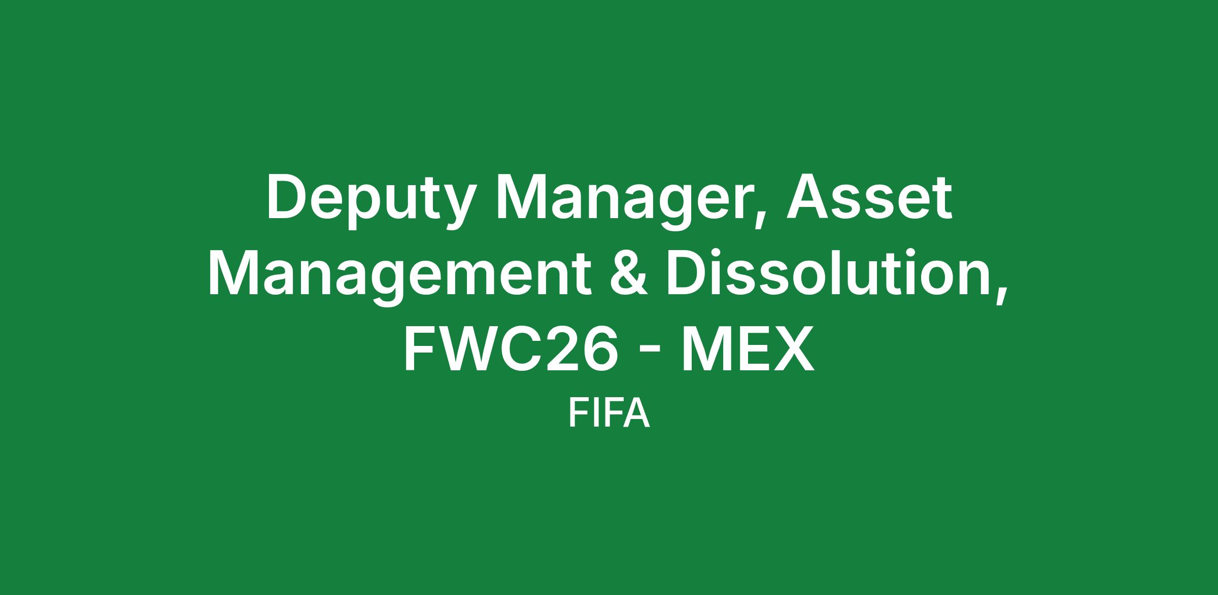 Deputy Manager, Asset Management & Dissolution, FWC26 - MEX