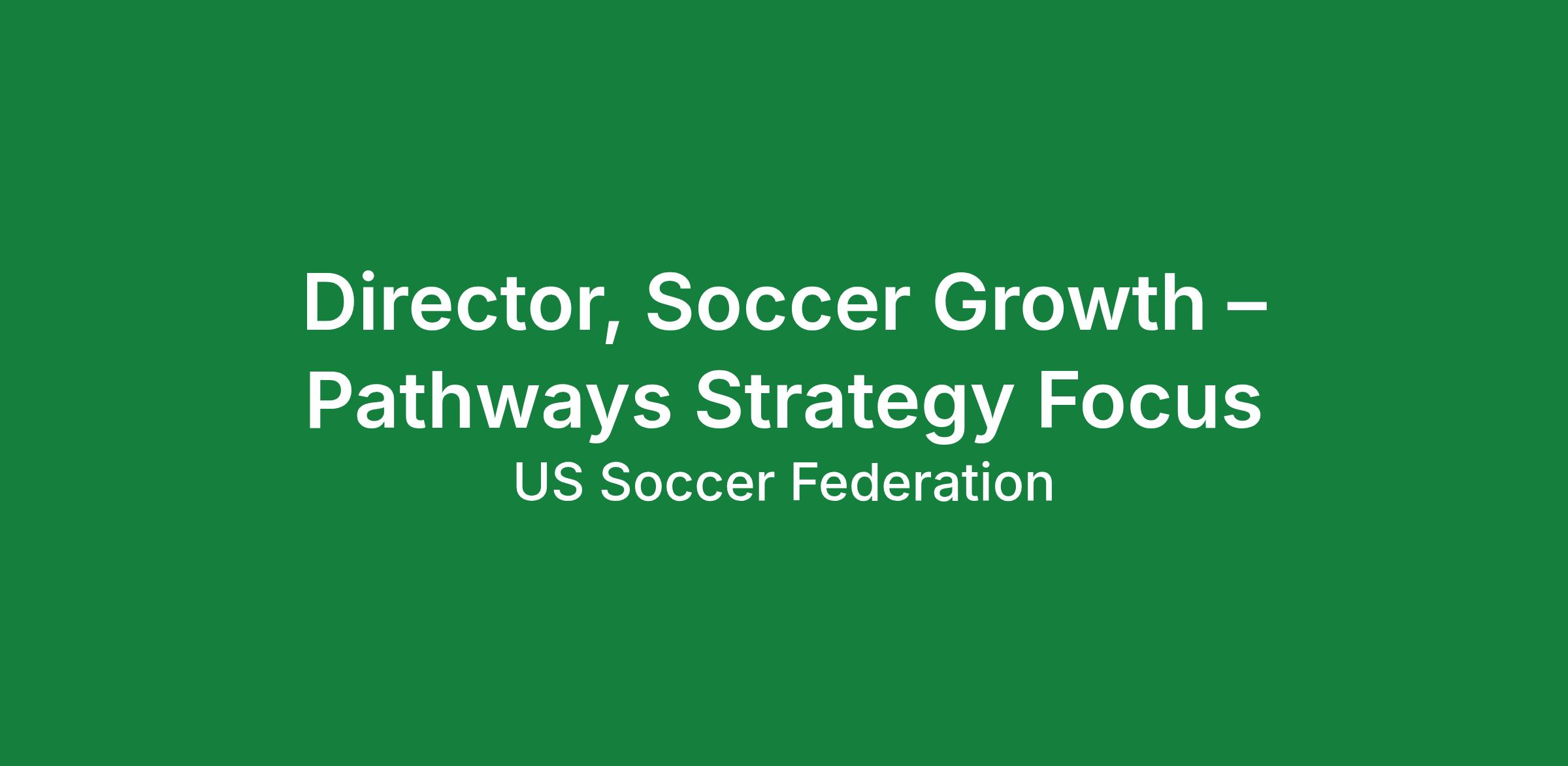 The Director of Soccer Growth will help lead the design and implementation of the future state vision for soccer under U.S. Soccer’s Pathways Strategy. This role requires deep understanding of the U.S. soccer ecosystem, strong business acumen, and the ability to align diverse stakeholders around a shared, player-centered philosophy – the U.S. Way.