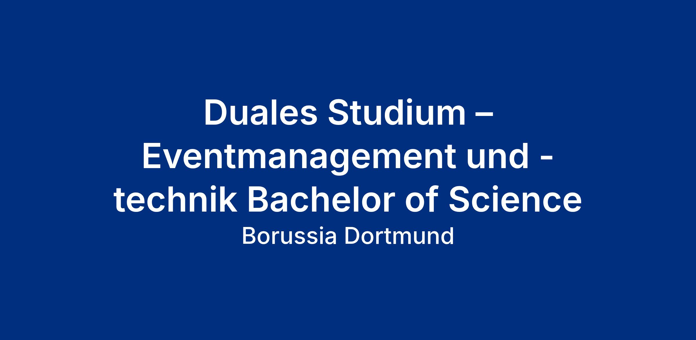 Wir freuen uns auf Deine aussagekräftige Bewerbung mit Motivationsschreiben, Lebenslauf und Zeugnissen. Bitte bewirb Dich bis zum 05.04.2026 online über den "Jetzt-bewerben-Button" und entscheide Dich für einen Bereich. Auf unserer Karriereseitefindest Du weitere Informationen zu Deinem Dualen Studium bei Borussia Dortmund.