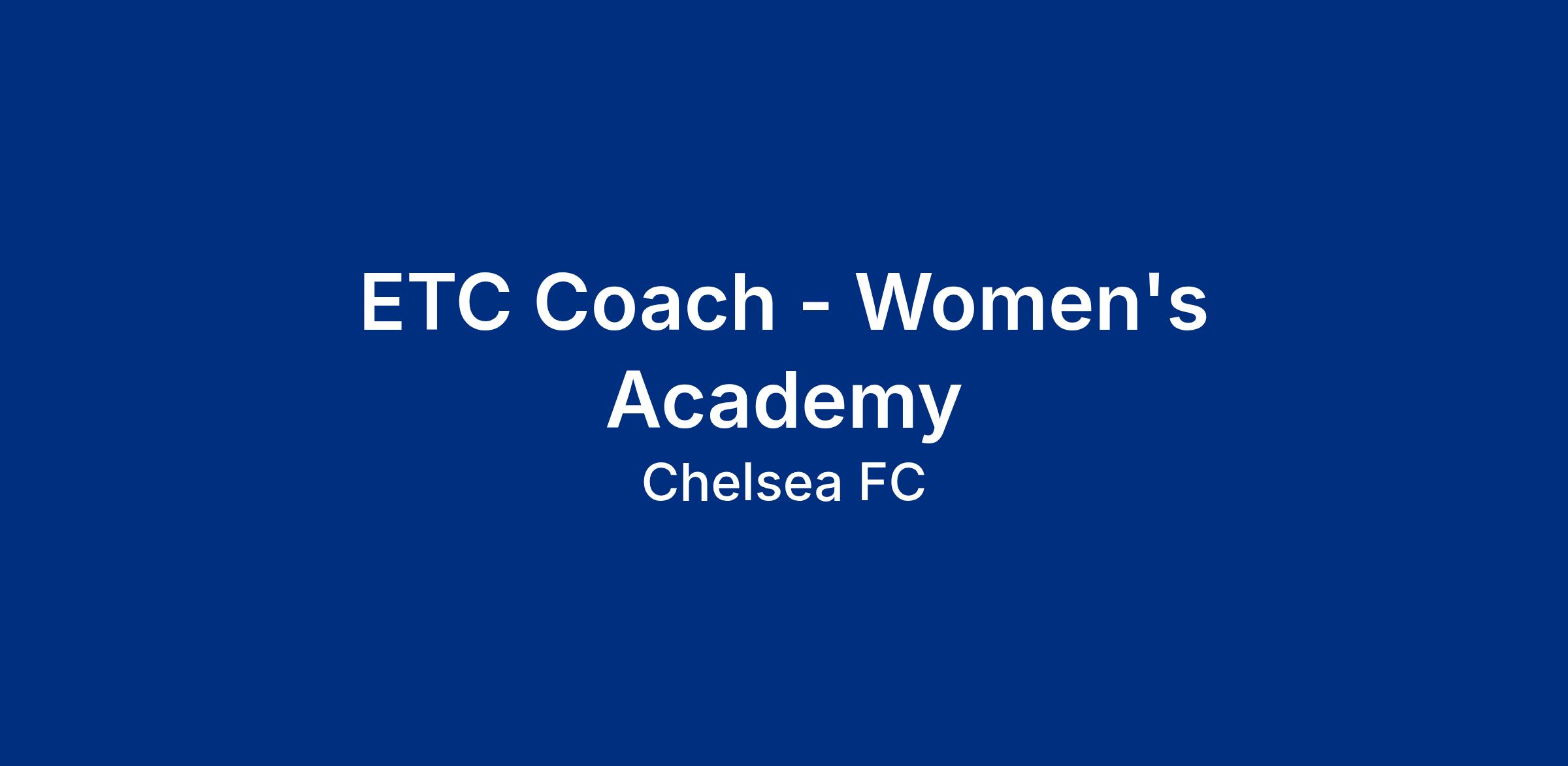 JOB TITLE: Women’s Academy – ETC Coach LOCATION: Cobham – Chelsea FC Training Ground, plus travel to ETC games programmes CONTRACT: Sessional Contract, 4 hours across 1 day, or, as and when required according to ETC half term schedule. Closing date: 7th...