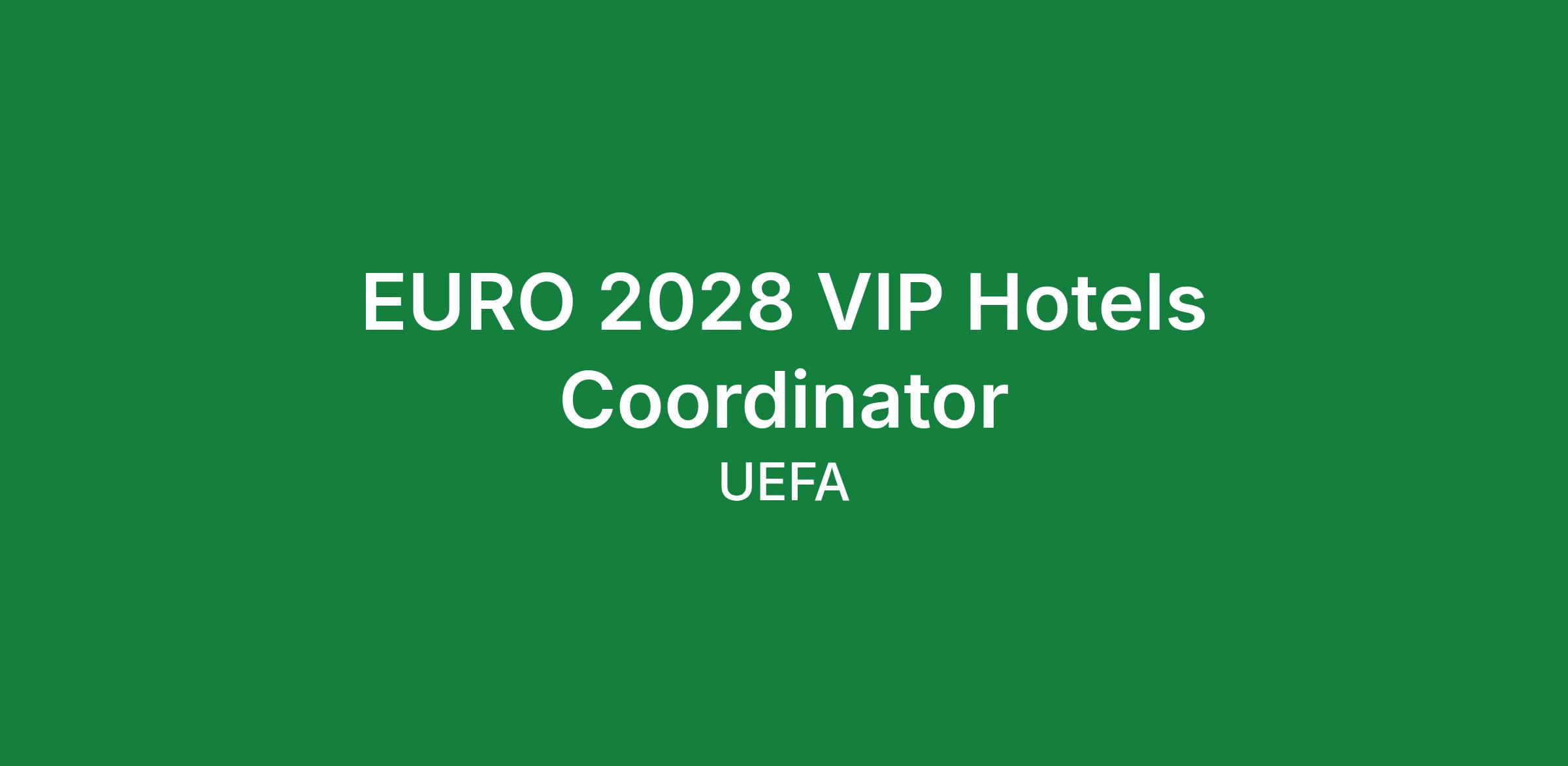 UEFA is recruiting three EURO 2028 VIP Hotels Coordinators, with start dates of 11 June 2026, 11 January 2027 and 1 June 2027. This role plays a key part in delivering an exceptional guest experience and ensuring operational excellence for UEFA EURO 2028, one of Europe’s largest sporting events.