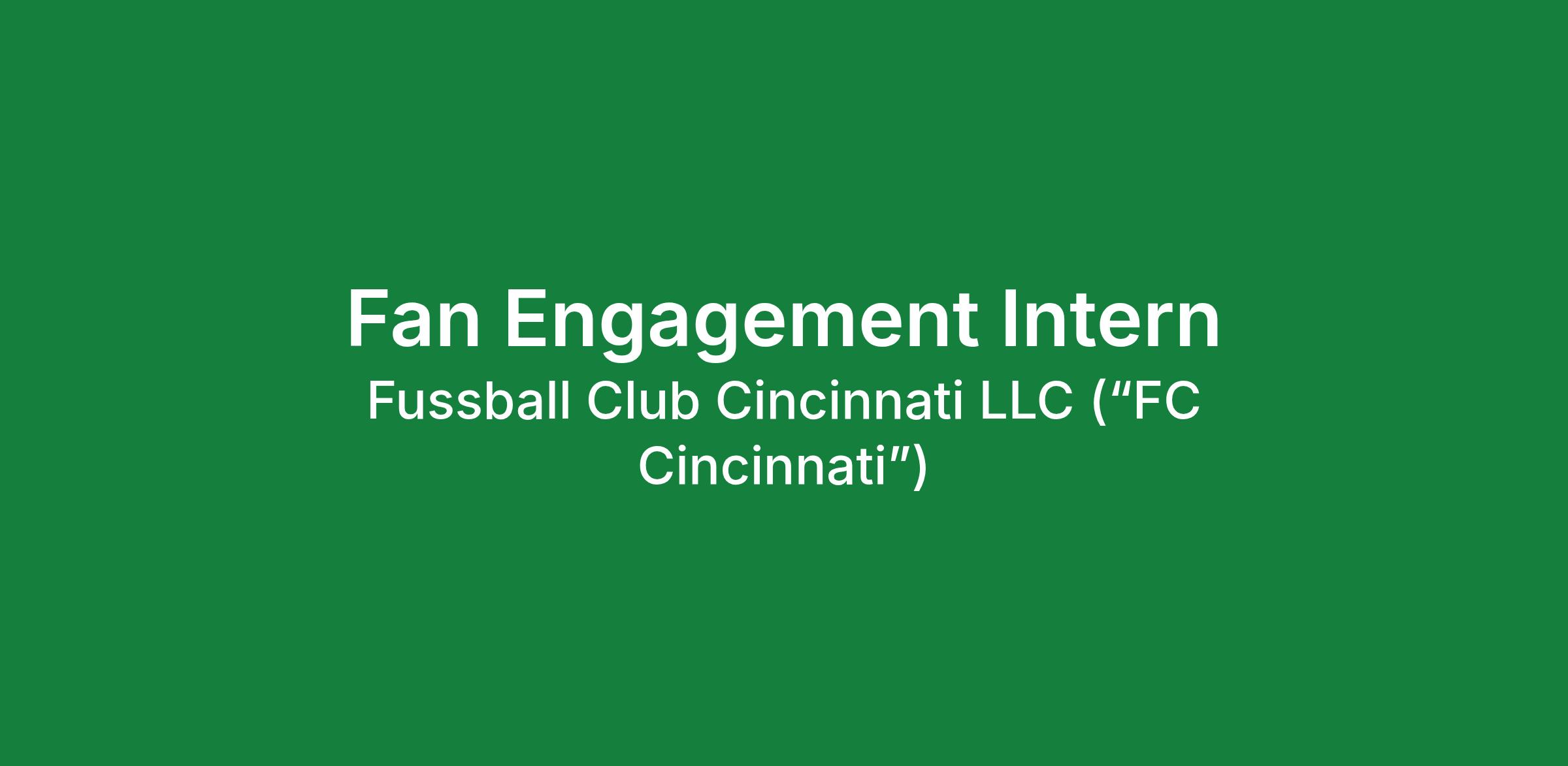 FC Cincinnati is an equal opportunity employer, and all qualified applicants will receive consideration for employment without regard to race, color, religion, sex, national origin, disability status, protected veteran status, or any other characteristic protected by law.