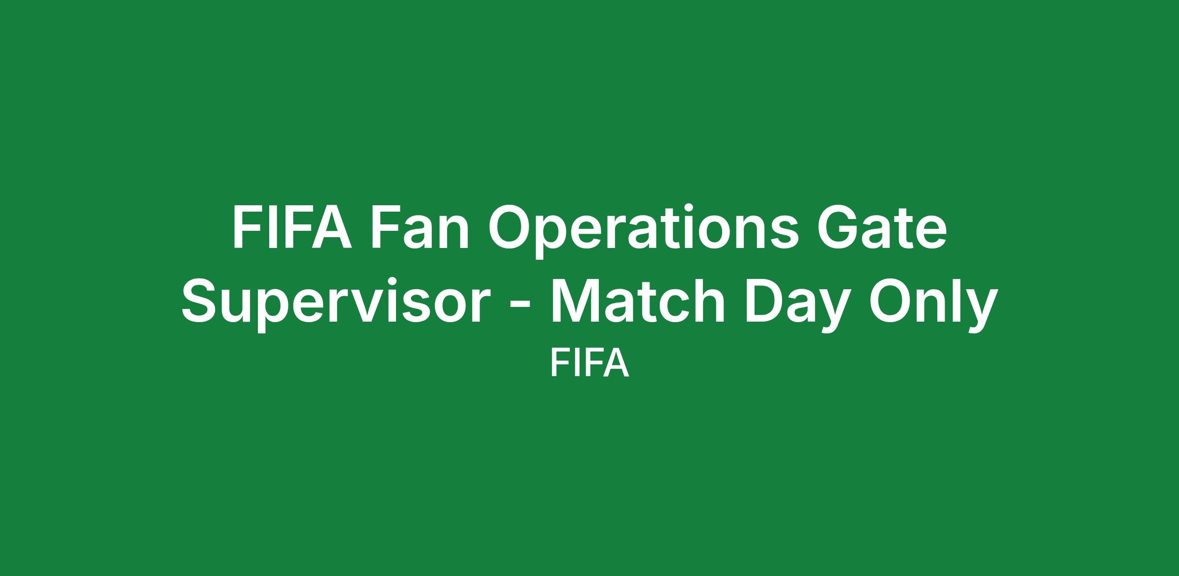 FIFA Fan Operations Gate Supervisor - Match Day Only