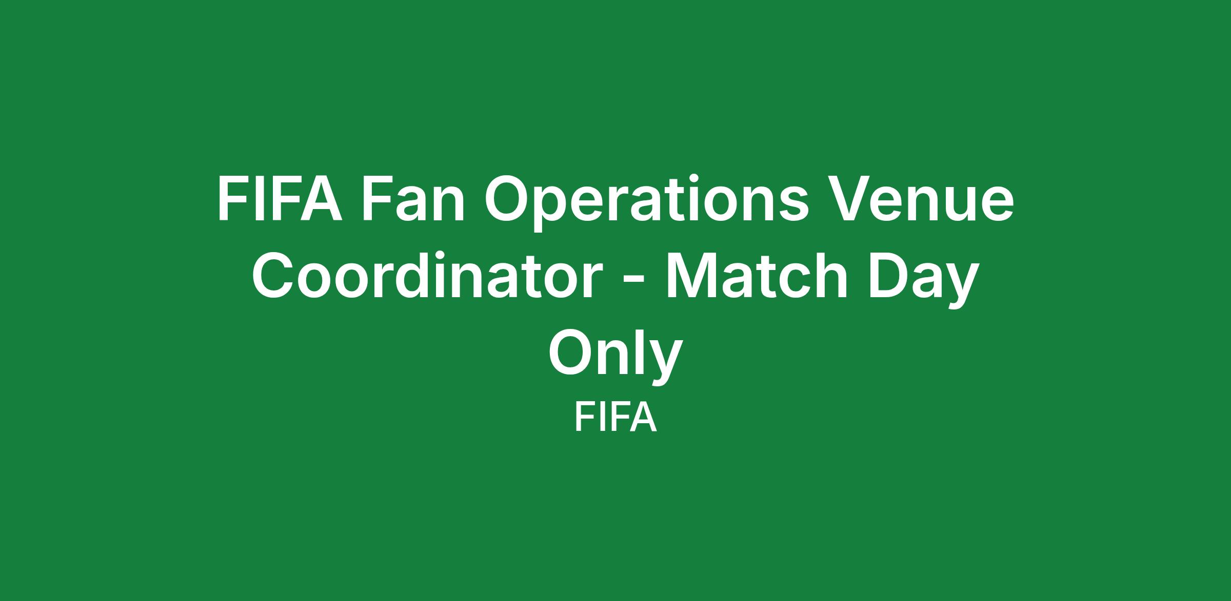 FIFA Fan Operations Venue Coordinator - Match Day Only