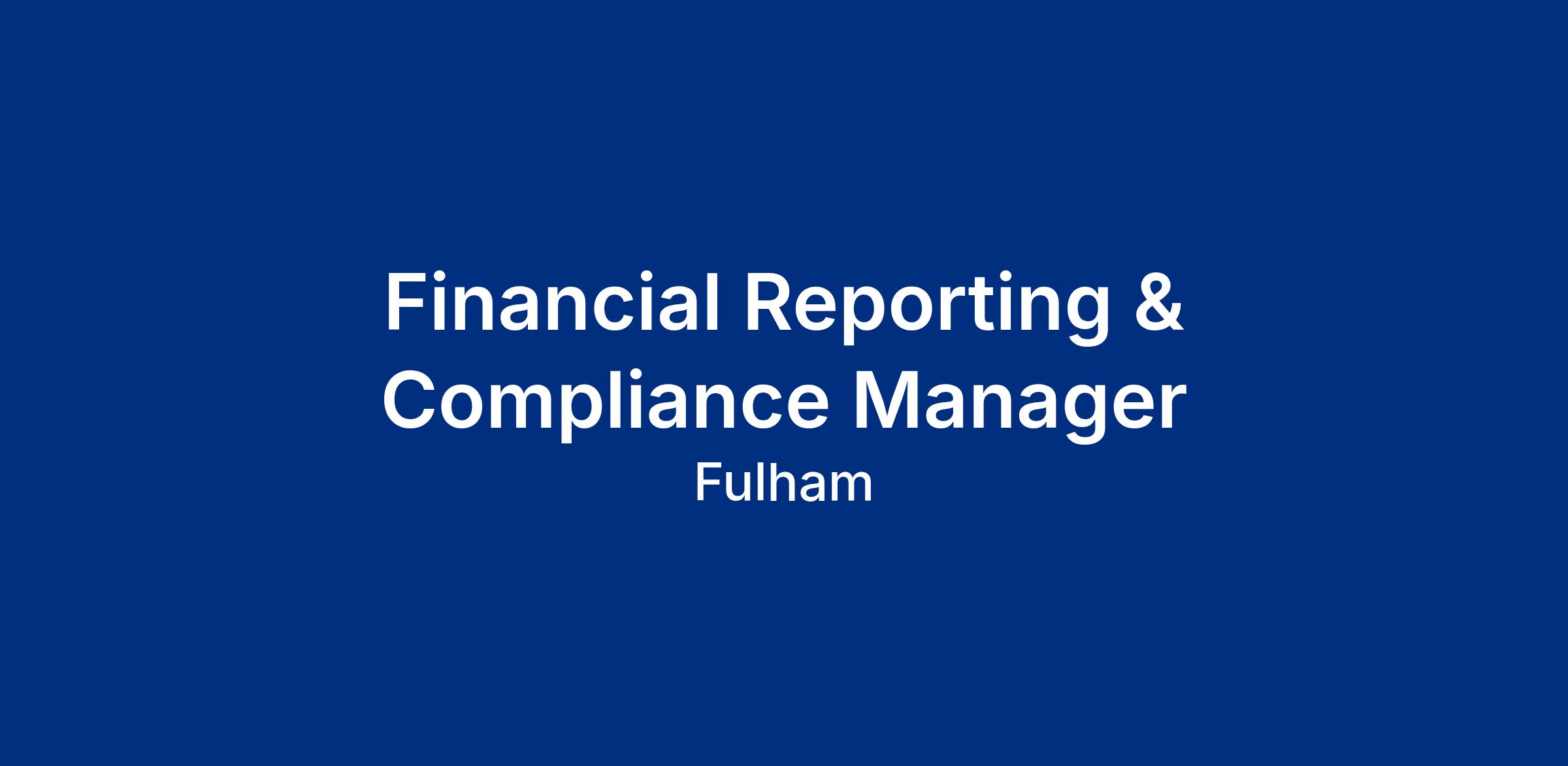 The Financial Reporting & Compliance Manager is a key role in the Fulham Group’s finance function. We are seeking a highly skilled finance professional to join our finance team and play a key role in financial reporting, compliance and regulatory submissions in support of the Club’s strategic objectives.