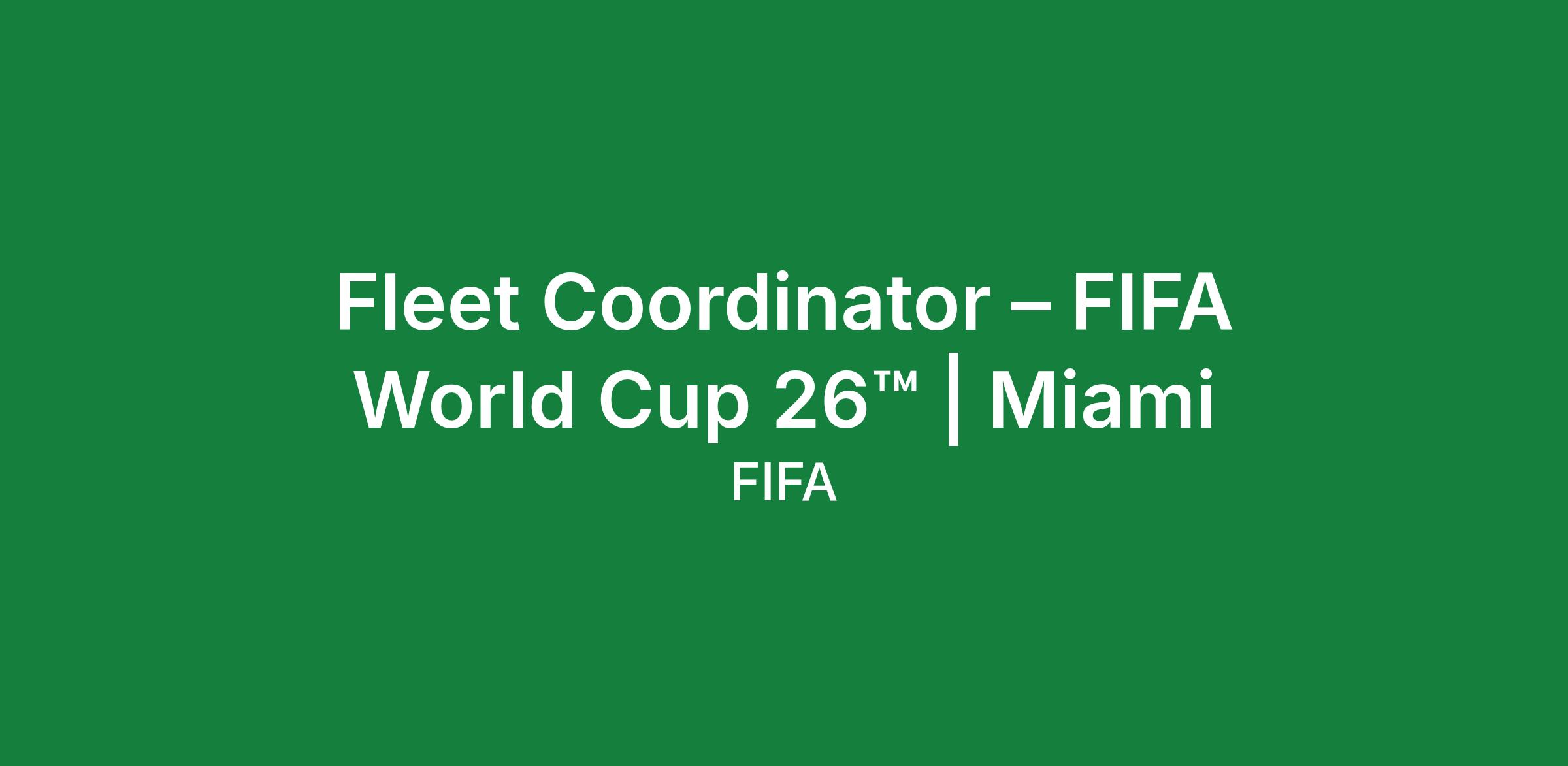 Fleet Coordinator – FIFA World Cup 26™ | Miami