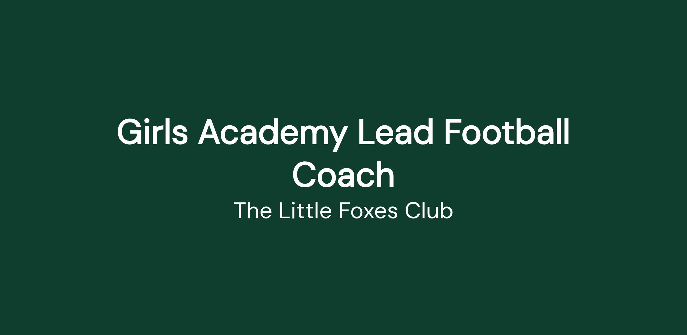 Girls Academy Lead Football Coach – Foxes FC Academy