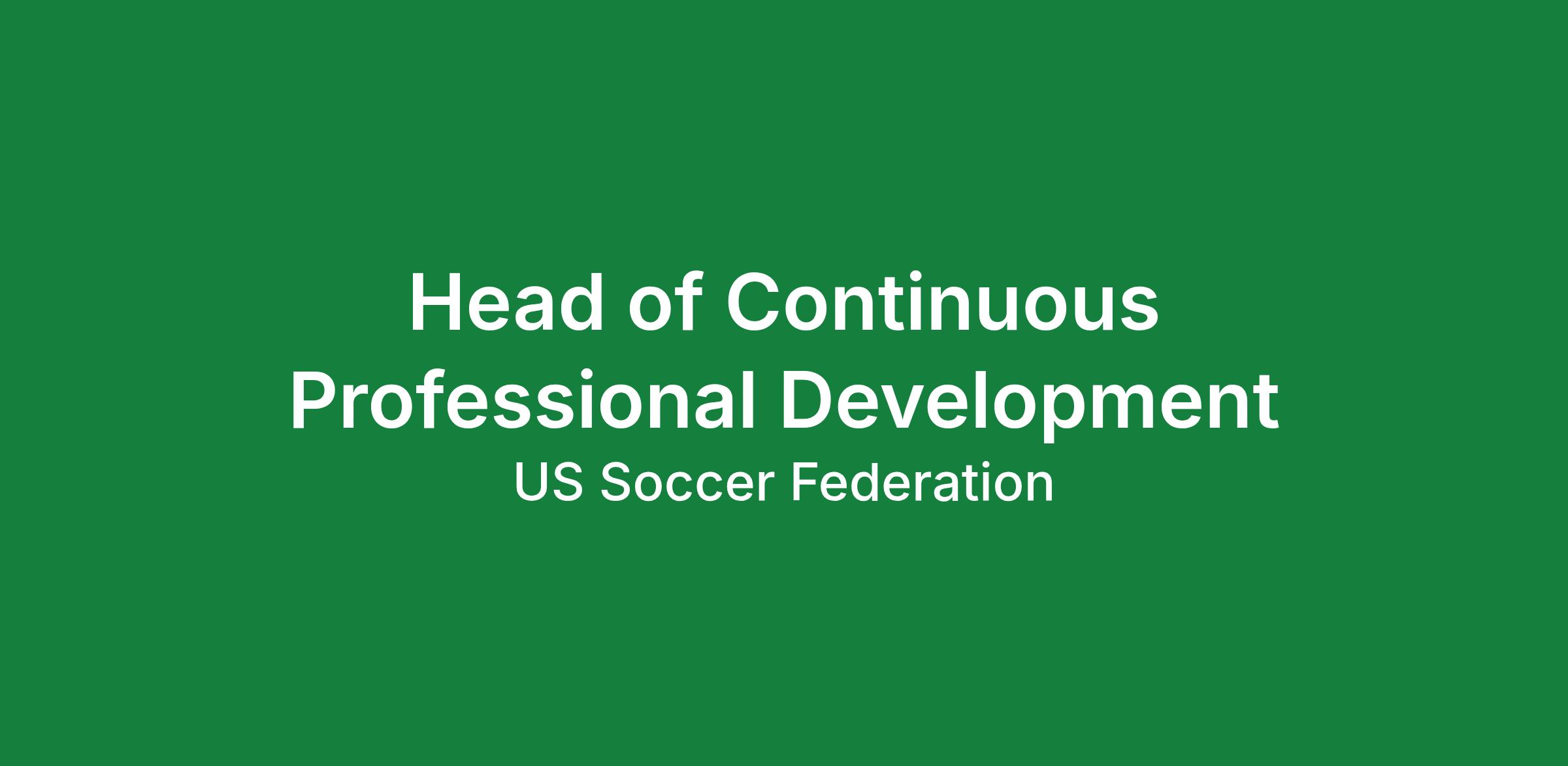 The Head of Continuous Professional Development (CPD) leads the design and development of a continuous professional development ecosystem for coaches and technical leaders including (but not limited to) US Way player-centered approach, leadership development, and broader professional development learning across the soccer ecosystem.