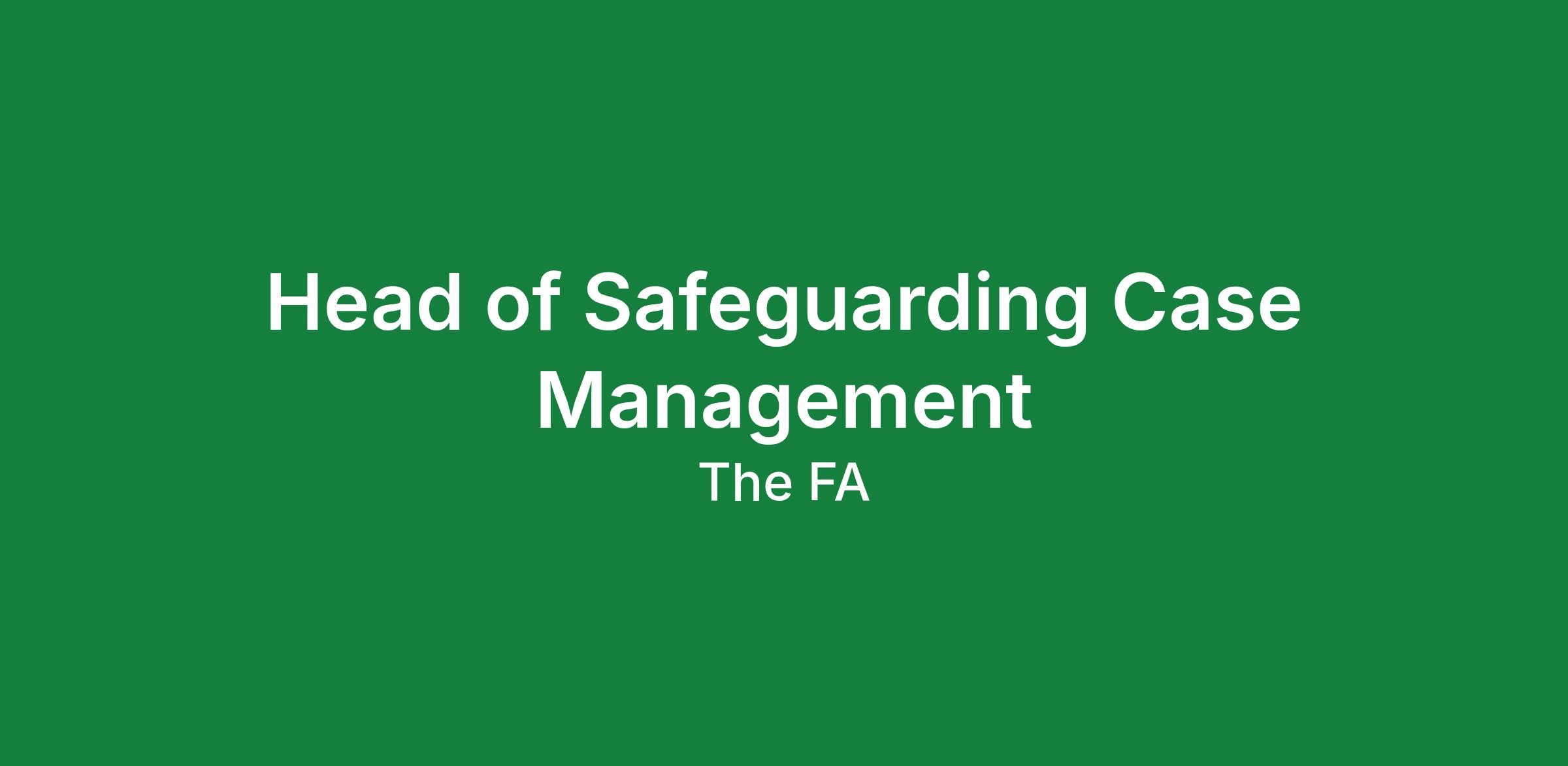 As Head of Safeguarding Case Management you will be responsible for leading The FA's Safeguarding Case Management Team and ensuring safeguarding concerns involving children and adults at risk are managed effectively and consistently.