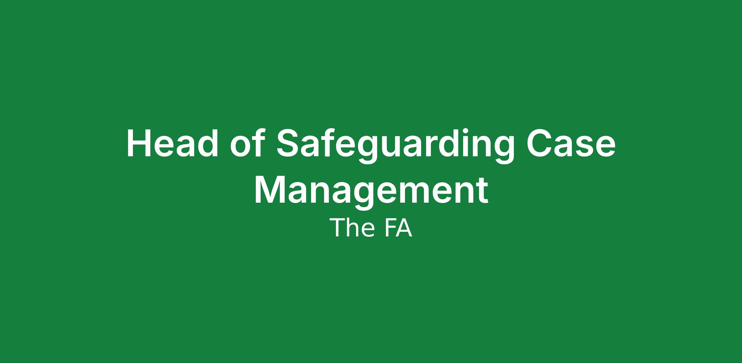 As Head of Safeguarding Case Management you will be responsible for leading The FA's Safeguarding Case Management Team and ensuring safeguarding concerns involving children and adults at risk are managed effectively and consistently.