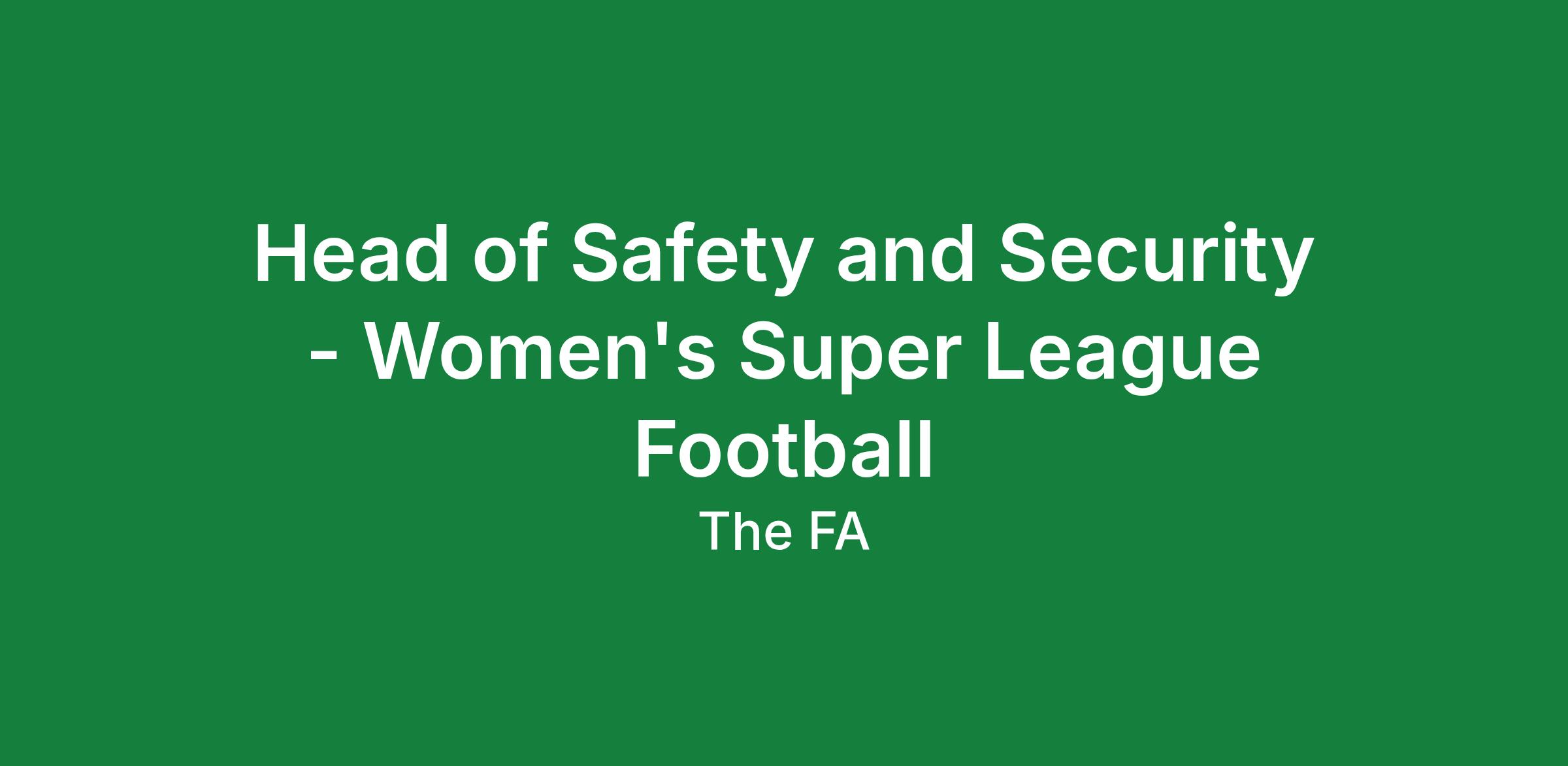 Women's Super League Football has an exciting opportunity for a Head of Safety and Security.