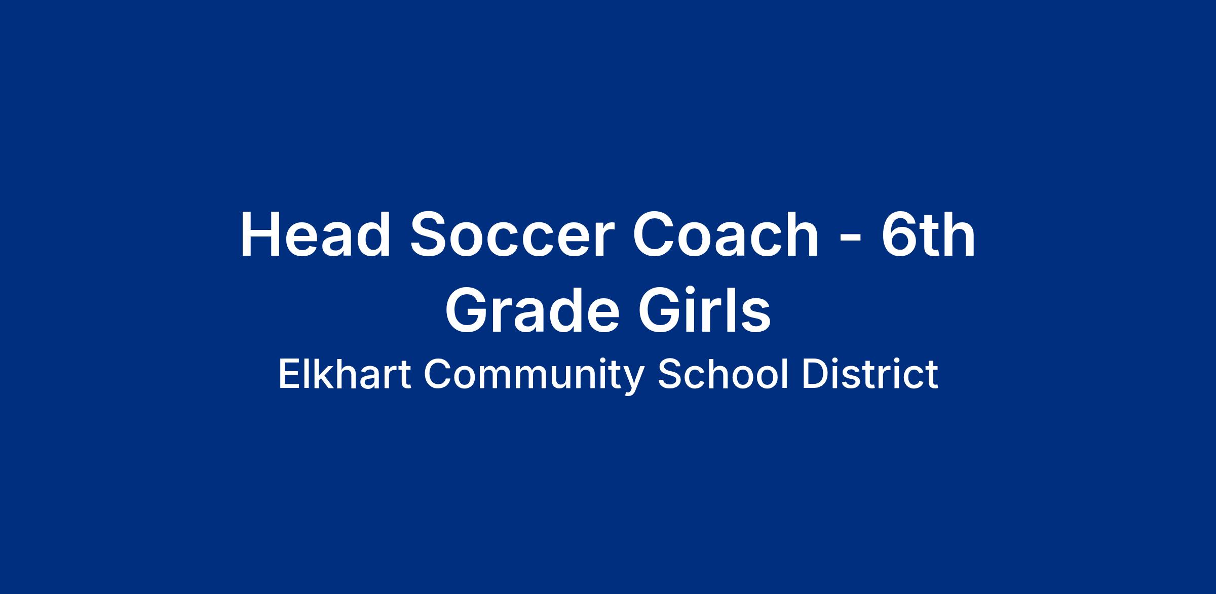 Head Soccer Coach - 6th Grade Girls