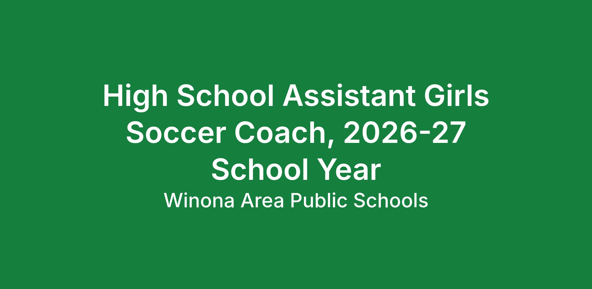 Responsibilities: Winona Area Public Schools is seeking an assistant coach for their Girls Soccer program for the 2026-27 school year. This program includes grades 7-12 and runs from August 11 through October. Responsibilities include day-to-day coaching of the student-athletes, game day coaching of the JV team, and working under the direction of the head coach