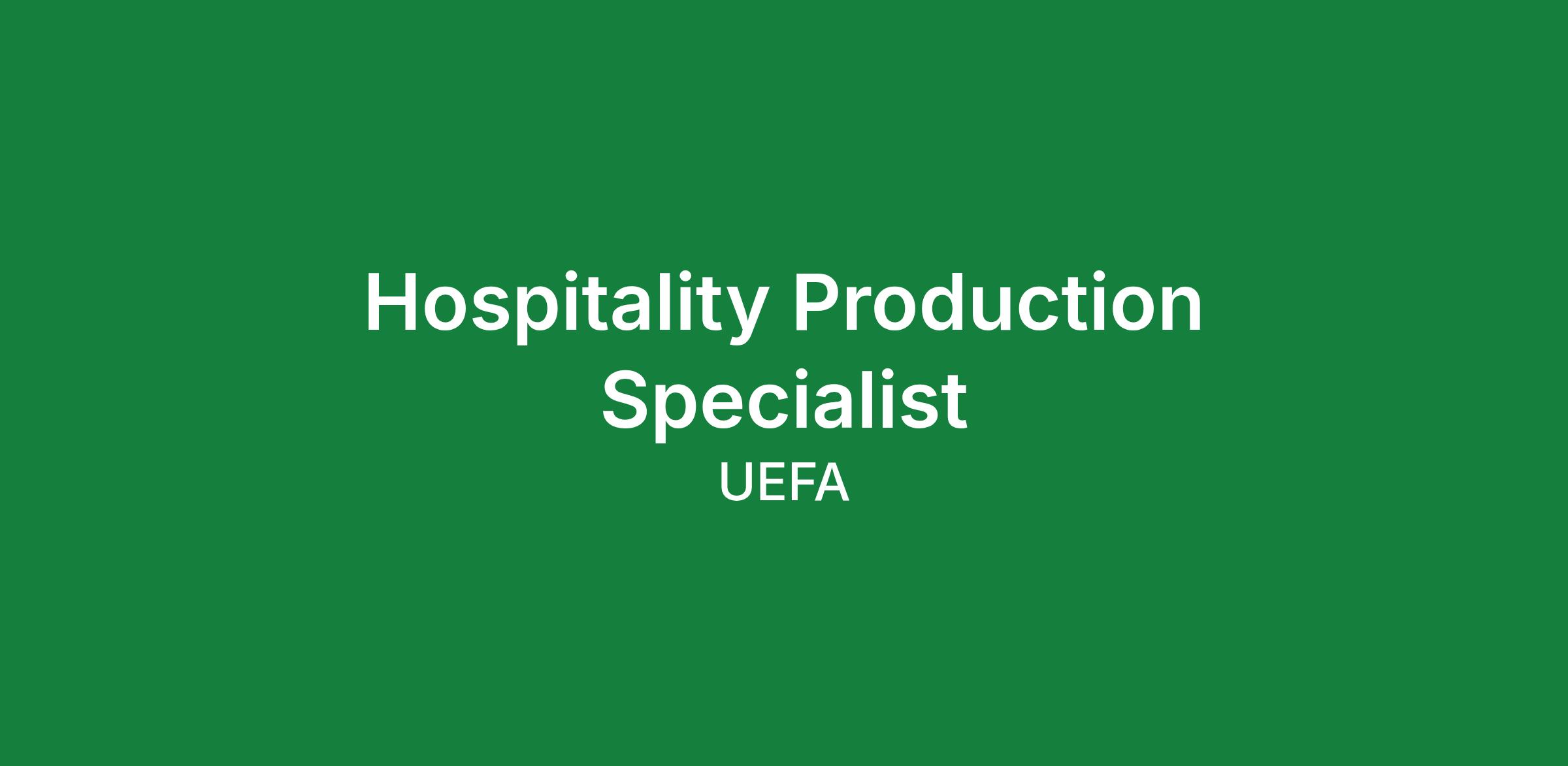 The Hospitality Production Specialist leads the conceptual design, project planning and end‑to‑end delivery of all hospitality production services for various target groups (VIP guests, commercial partner guests, official hospitality guests and finalist guests) at the UEFA Europa League final and the UEFA Super Cup. The services include hospitality catering, branding and decoration, entertainment and other associated production services (e.g. audio, video and lighting, furniture and guest host services). The Hospitality Production Specialist also oversees the workforce catering on venue.