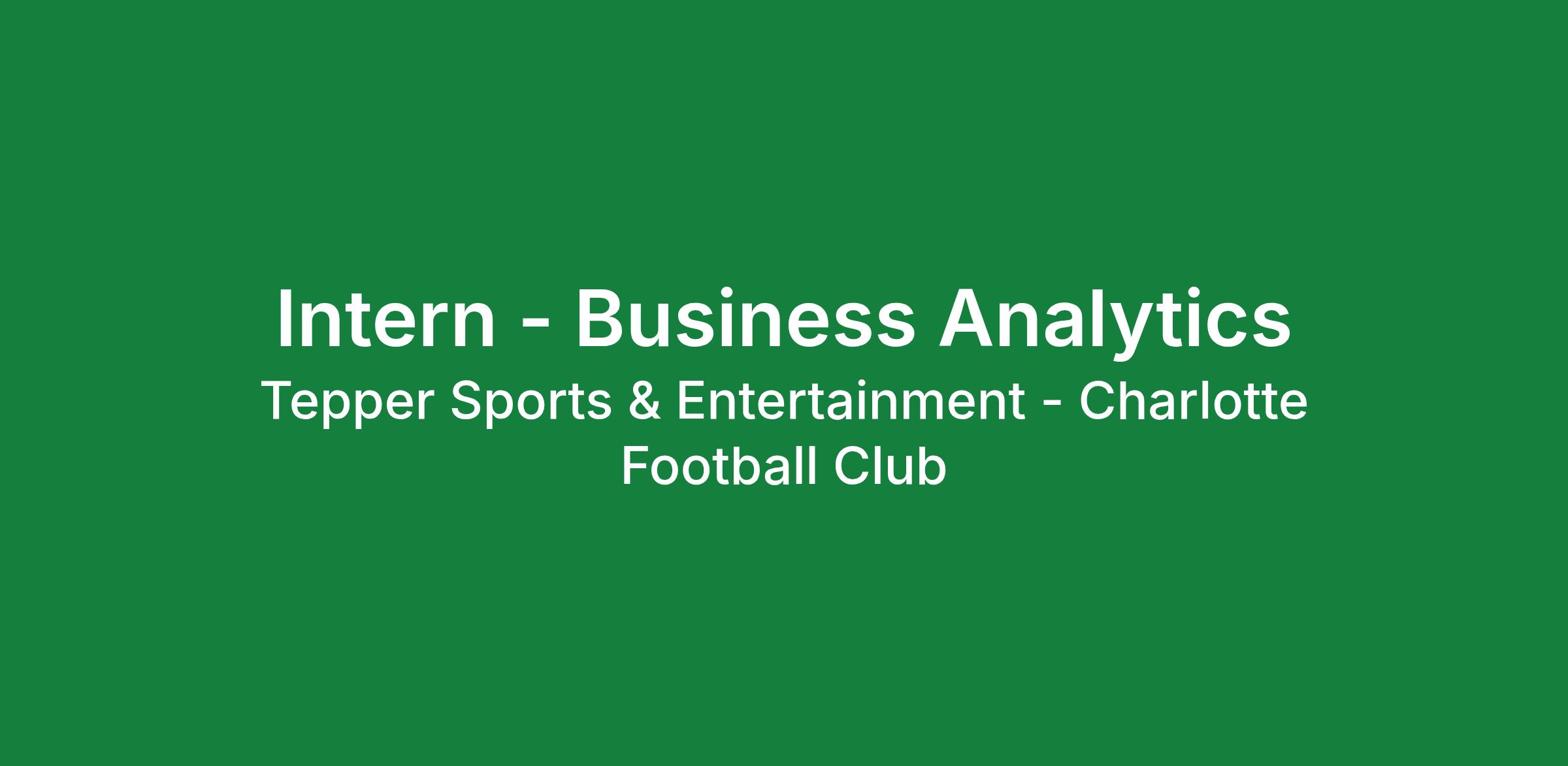 Charlotte FC is looking for a Business Analytics Intern to help drive business performance and fan experience in a fast-paced, entrepreneurial, high-performing work environment.