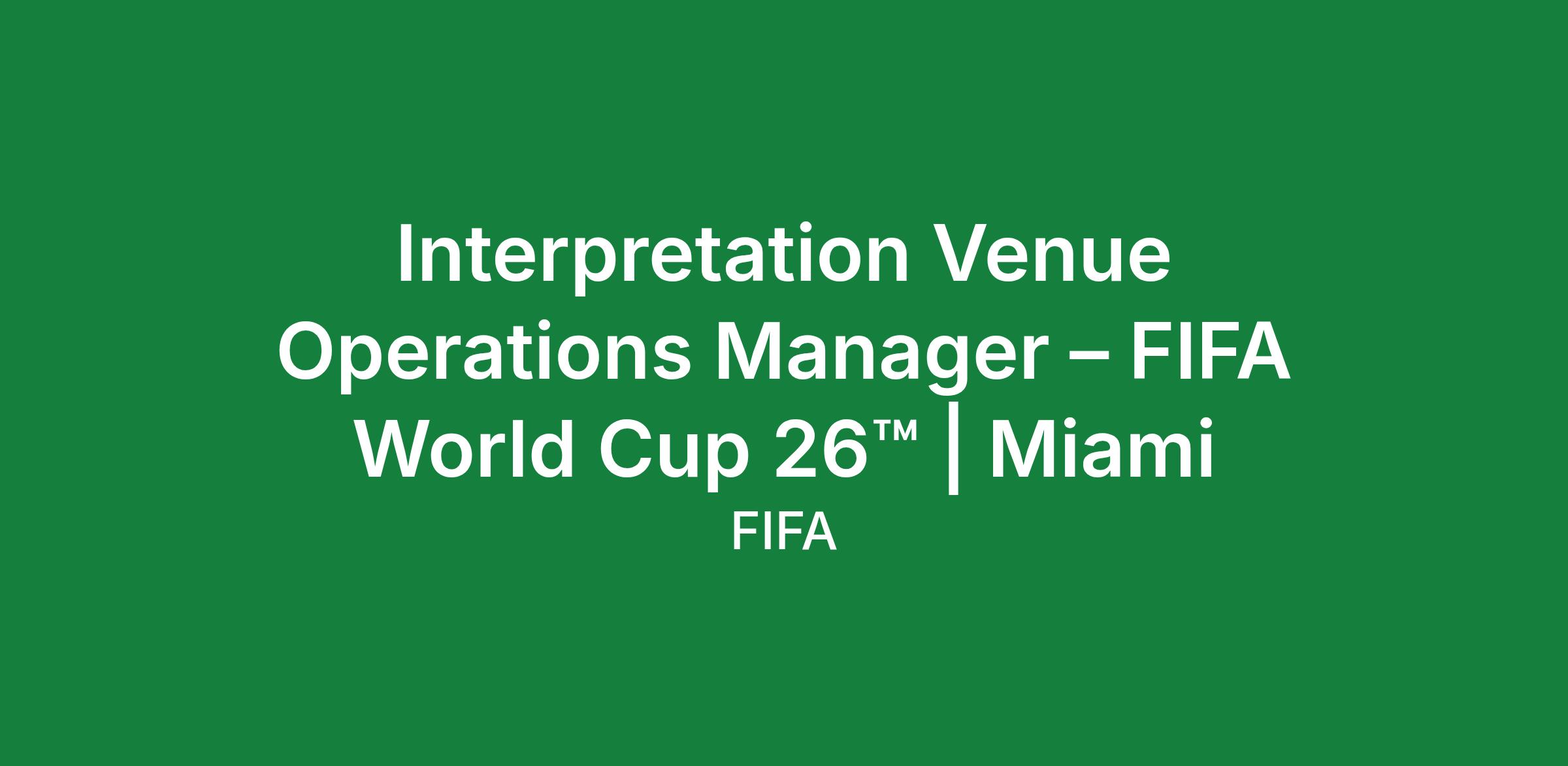 Interpretation Venue Operations Manager – FIFA World Cup 26™ | Miami