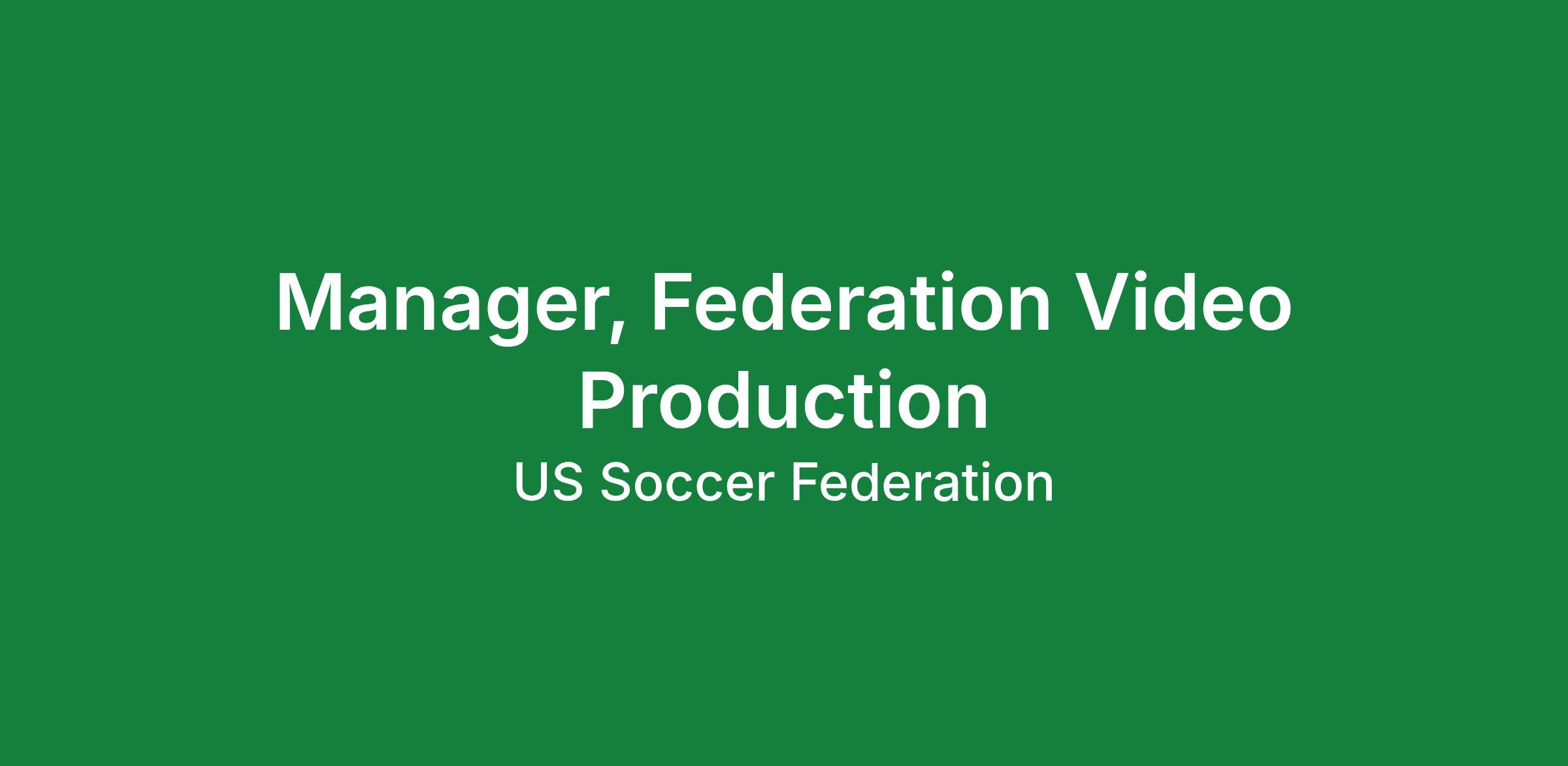 U.S. Soccer is seeking an experienced Video Producer for the Federation Video content team. The Manager will be tasked will be tasked with telling the story of soccer in all forms across the soccer landscape. This includes highlighting the Federation’s work in service to soccer, our members (referees, coaches, member orgs, etc.) and ultimately the best of us - our athletes across our Youth and Extended National Teams.