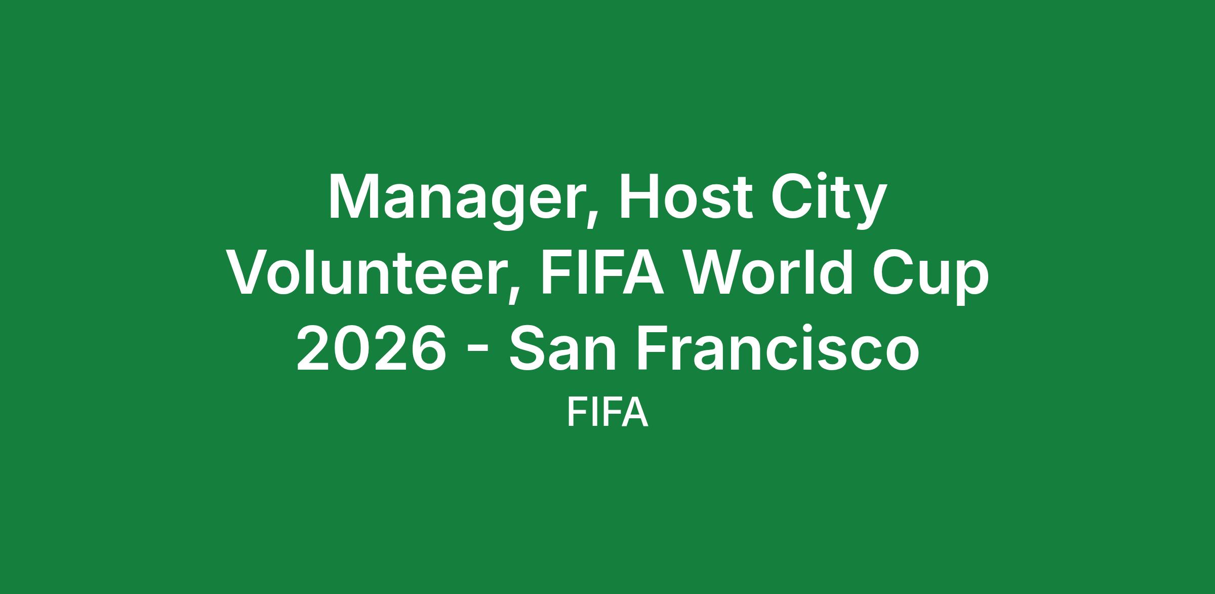 The PositionReporting organizationally to the Country Senior Manager, the Host City, Volunteer Manager will help serve Volunteer efforts for the FIFA Club World Cup 2025TM and FIFA World Cup 2026TM that for the first time ever, is hosting 48 teams and 1,200+ players across 3 countries and 16 cities. This role will be responsible for driving the end-2-end volunteer journey at a Host City level, with a planning and operational focus on recruitment, training and Tournament delivery phases alongside the overarching management of the volunteer experience. The successful candidate will work in close collaboration with the wider FWC26 Volunteer Team to implement the wider FWC 2026 Volunteer strategy, alongside each specific Host City volunteer lead, ensuring a coordinated integrated approach and overall program effectiveness.