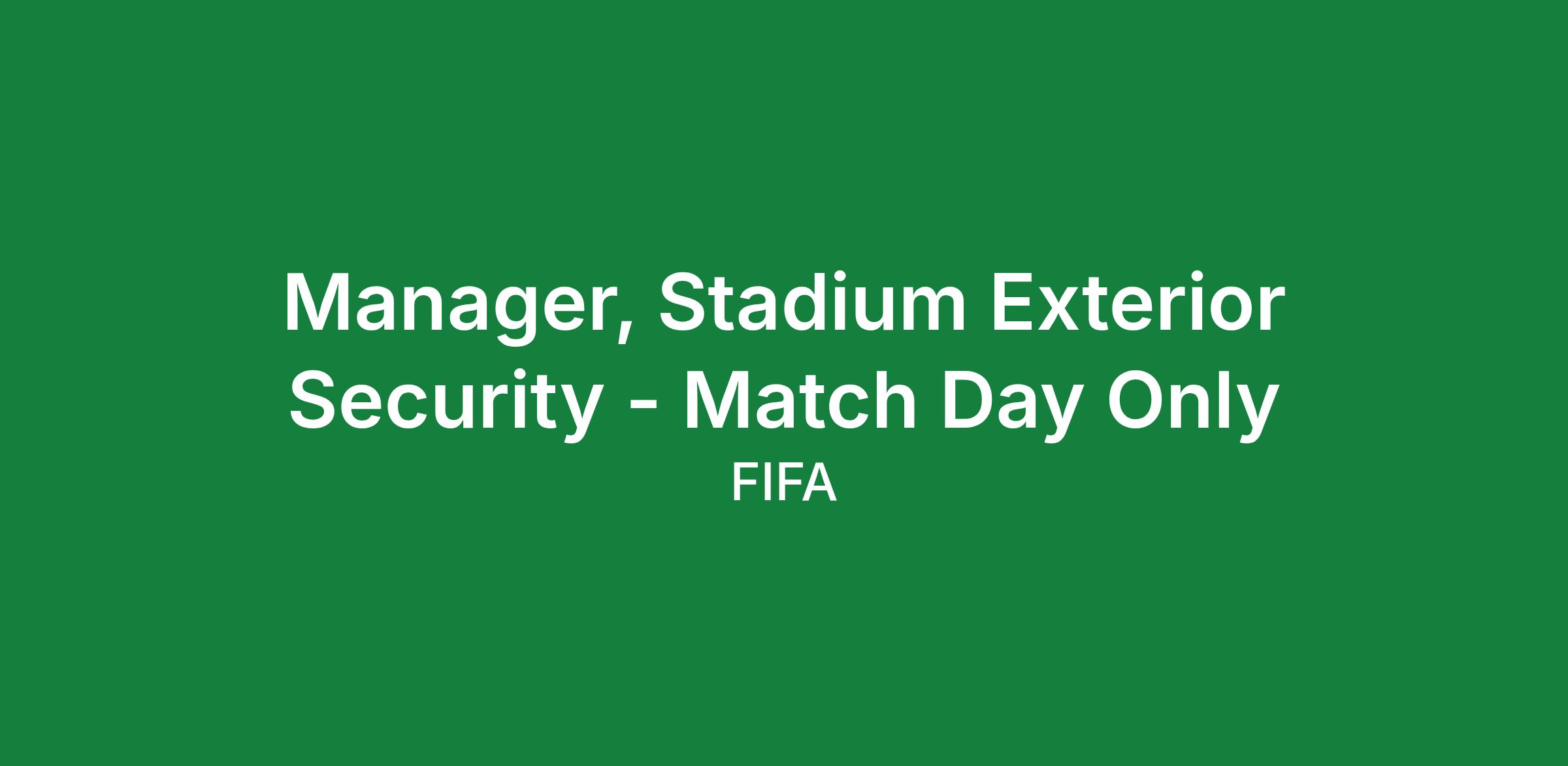 Reporting operationally to the FIFA Stadium Safety & Security Senior Manager, the Stadium Exterior Security Operations Manager is responsible for overseeing FIFA’s engagement with the Last Mile operations, the Private Security Outer Perimeter security operations, operational FIFA sites outside of the stadium walls, and all screening activities conducted at PSA and VSA locations during Match Day operations.