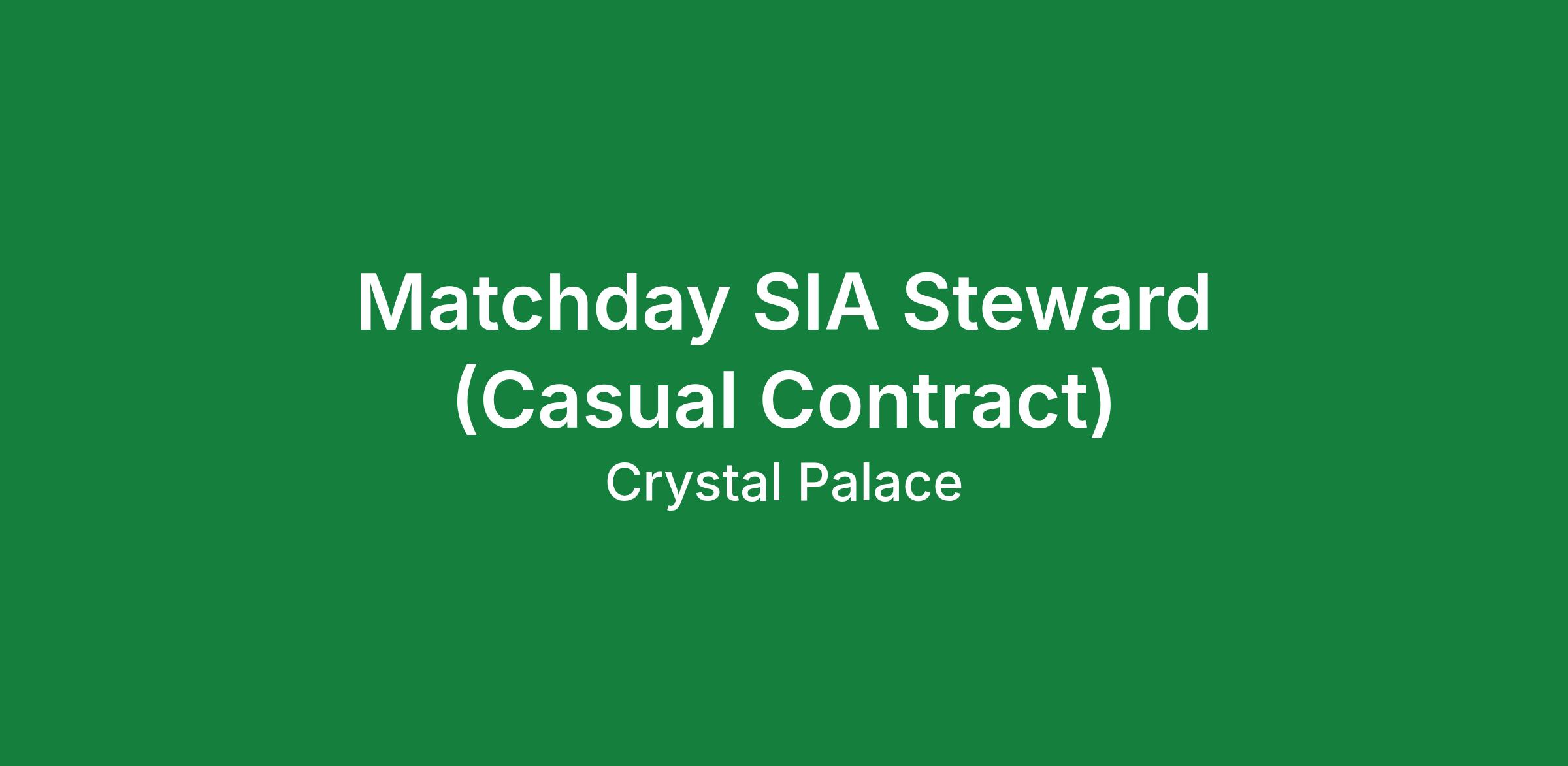 Crystal Palace FC is looking for passionate, well-presented, and engaging individuals to join our Security matchday team. You’ll play a key role in ensuring the safety, safeguarding, and enjoyment of all our guests at Selhurst Park. Representing Crystal Palace FC on the front line, you’ll deliver outstanding service with a smile, support fans, and help create an unforgettable matchday experience. Be part of the energy, excitement, and pride of Selhurst Park as you play a key role in bringing our club to life on matchdays.