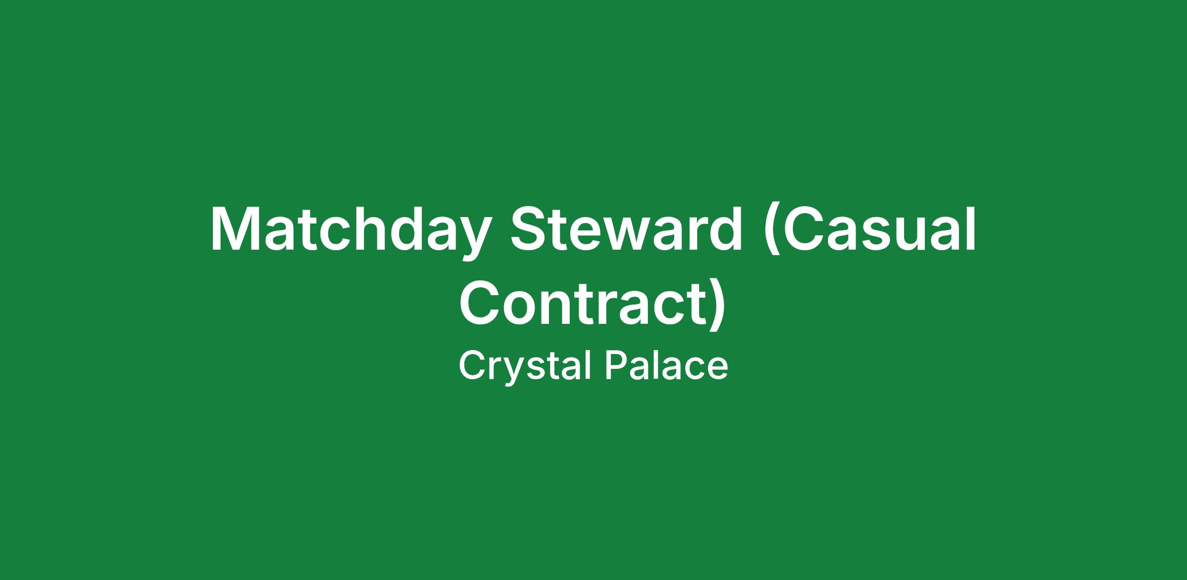 Crystal Palace FC is looking for passionate, well-presented, and engaging individuals to join our Security matchday team. You’ll play a key role in ensuring the safety, safeguarding, and enjoyment of all our guests at Selhurst Park. Representing Crystal Palace FC on the front line, you’ll deliver outstanding service with a smile, support fans, and help create an unforgettable matchday experience. Be part of the energy, excitement, and pride of Selhurst Park as you play a key role in bringing our club to life on matchdays.
