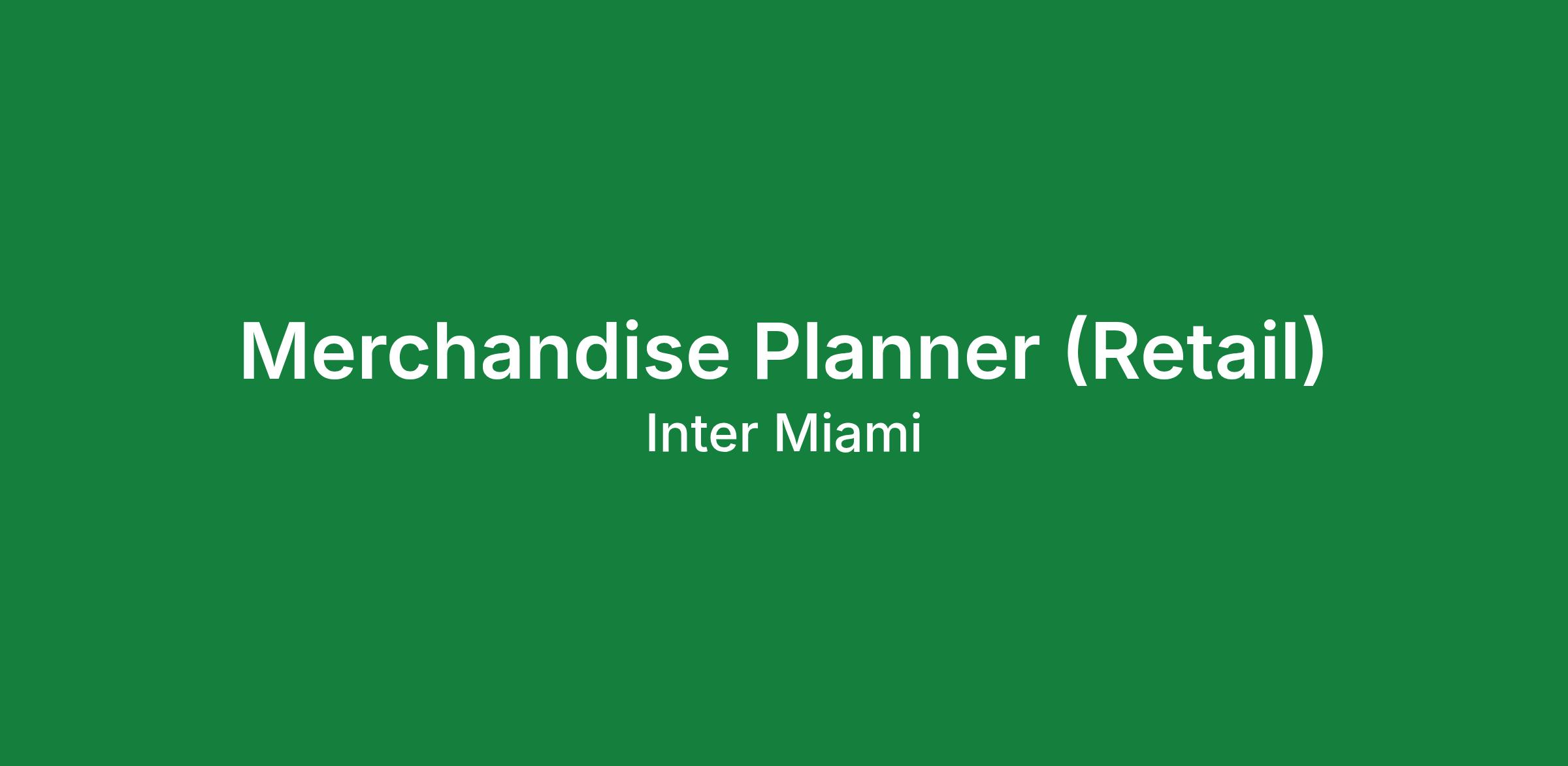 Inter Miami CF is seeking a Merchandise Planner to support the financial planning, forecasting, and inventory optimization of the club’s retail and e-commerce merchandise business. This role is responsible for driving data-informed planning decisions that maximize sales, margin, and inventory productivity across channels. The ideal candidate is analytically strong, detail-oriented, and collaborative, with experience balancing financial targets, inventory health, and business needs in a fast-paced retail environment.
