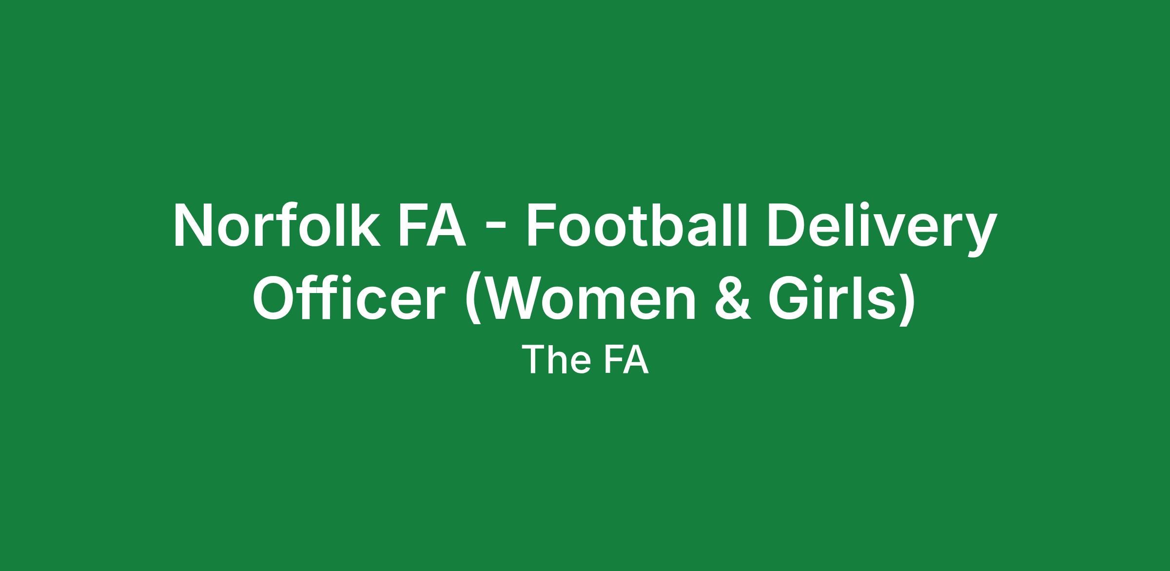 Norfolk FA are looking to recruit a Football Delivery Officer (Women & Girls) to join our Football Delivery Team, with the key focus of the role being on growing and developing the female game across Norfolk.