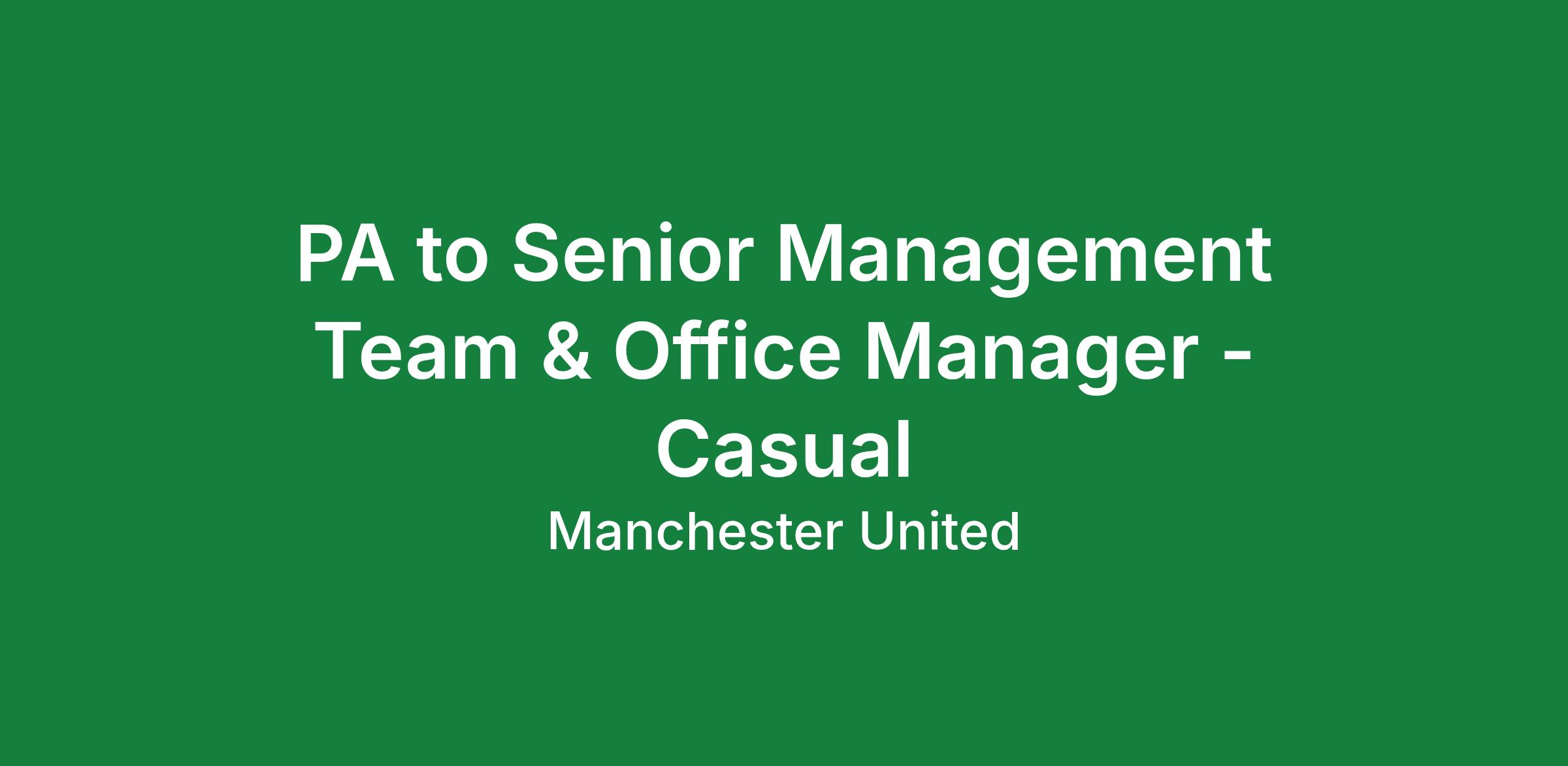 PA to Senior Management Team & Office Manager - Casual