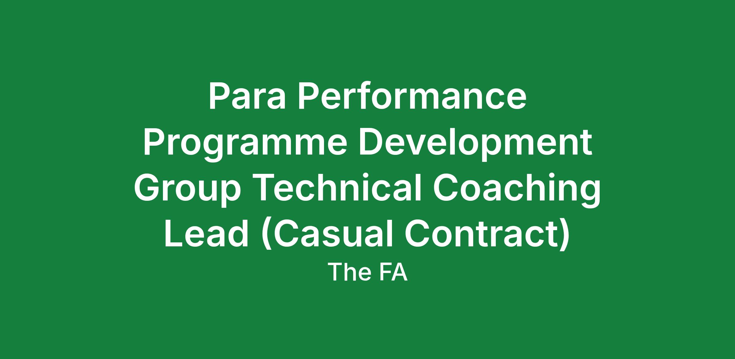 The FA's Para Division is looking to appoint three Para Performance Programme Development Group Technical Coaching Leads to lead the support of Para players within the development group environments, ensuring continued pipeline of elite para footballers into senior squads.