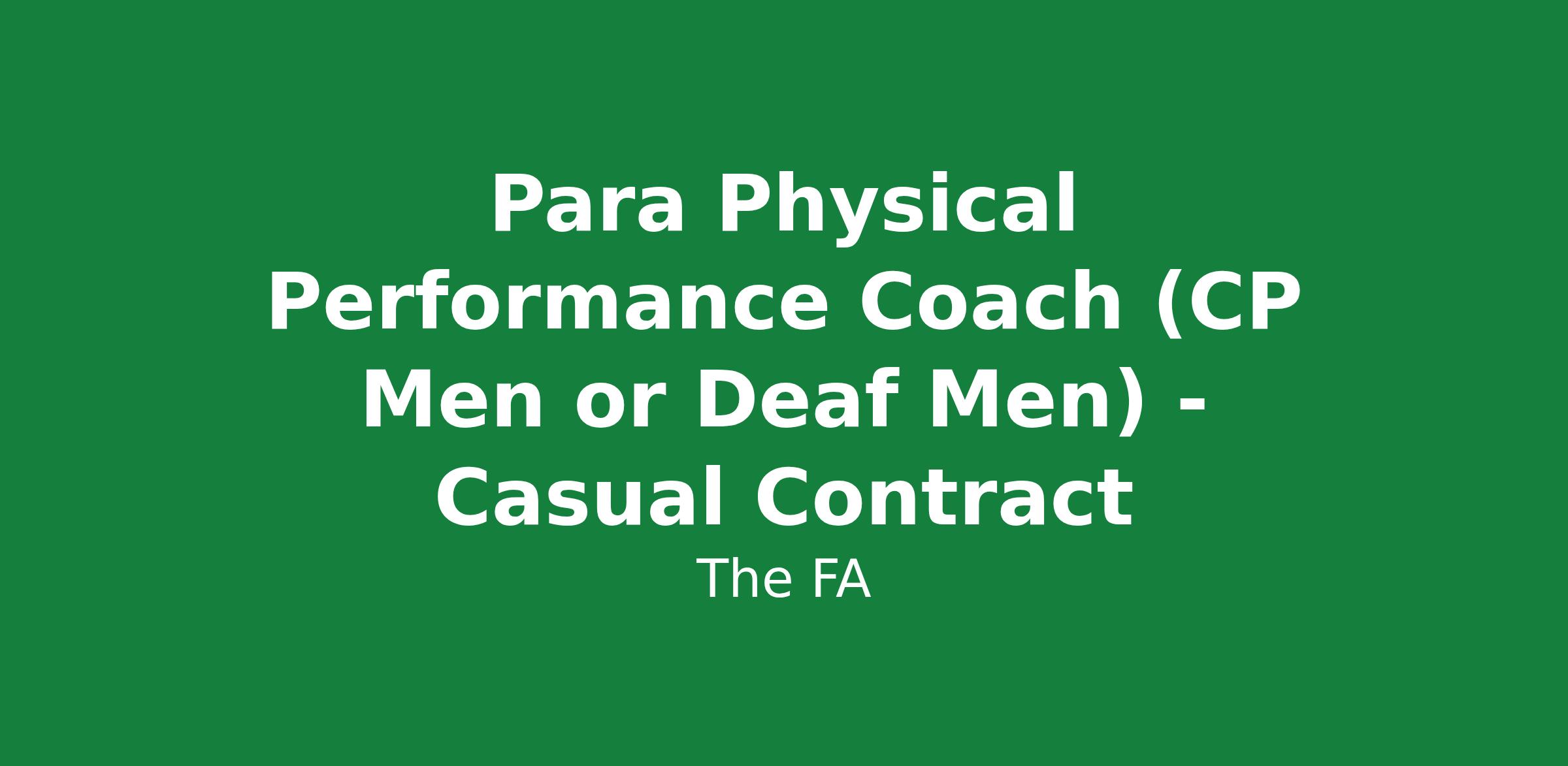 The FA's Para Division are looking for two Physical Performance Coaches; one to support the development of physical performance for men's Cerebral Palsy (CP) team and one to support the men's Deaf team, inclusive of on- and off-camp delivery.