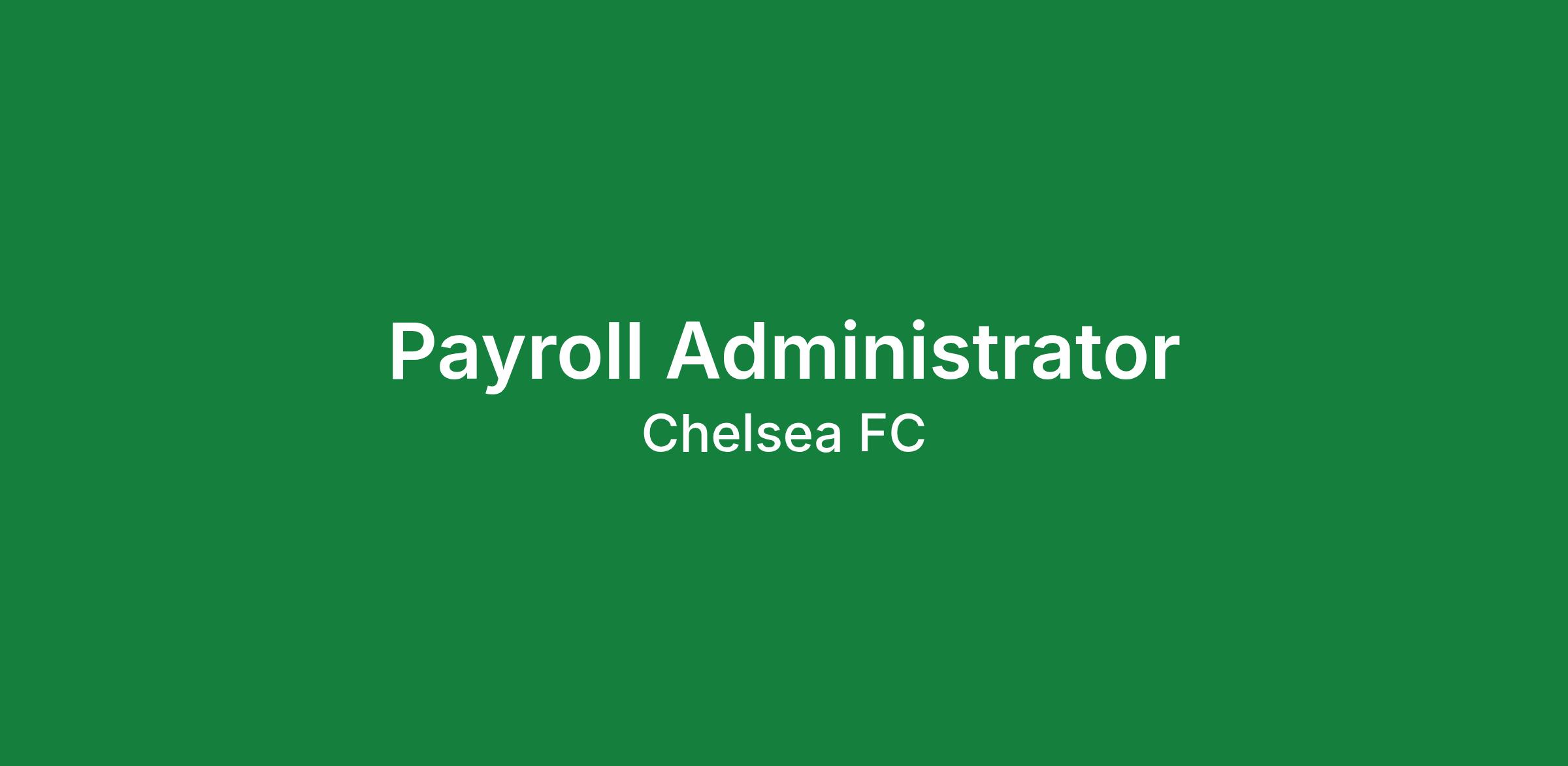 JOB TITLE: Payroll Administrator DEPARTMENT: Finance LOCATION: Stamford Bridge CONTRACT: Permanent, Full Time JOB FUNCTION: To ensure the provision of an efficient & effective payroll function, ensuring a consistent and timely high quality payroll servi...