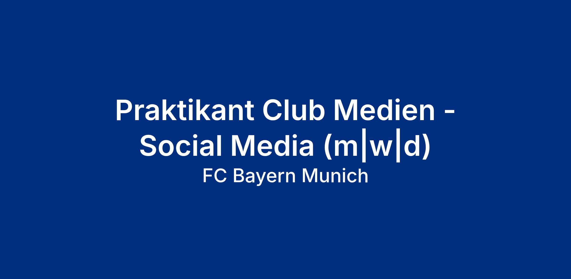 Der FC Bayern München ist einer der erfolgreichsten Fußballclubs der Welt und steht auch abseits des Fußballplatzes für Stabilität, Nachhaltigkeit, Erfolg und Qualität. Zur Verstärkung der Abteilung Club Medien suchen wir ab April 2026 einen Praktikanten (m|w|d) im Bereich Social Media in Vollzeit für 3 Monate (nach Absprache und im Rahmen eines universitären Pflichtpraktikums ist auch ein Zeitraum von bis zu 6 Monaten möglich).