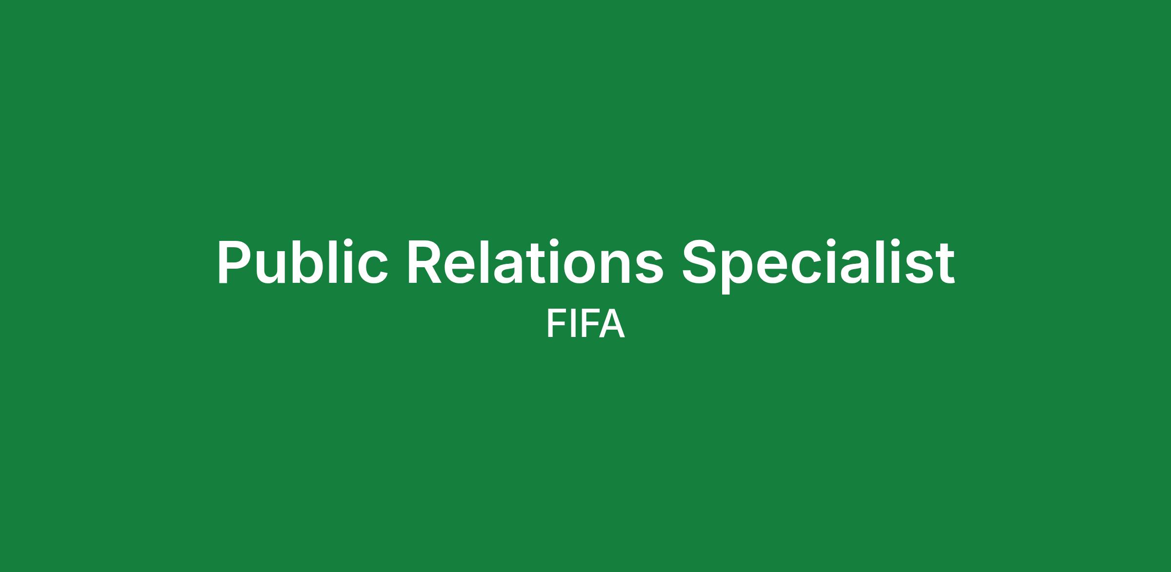 The Public Relations Specialist will be a key member of the FIFA26 Communications & PR team, and work in close collaboration with the FIFA Zurich Communications and Media Relations teams and other key individuals responsible for delivering Public Relations efforts for the FIFA World Cup 2026 that for the first time ever, is hosting 48 teams and 1,200+ players across 3 countries and 16 venues.