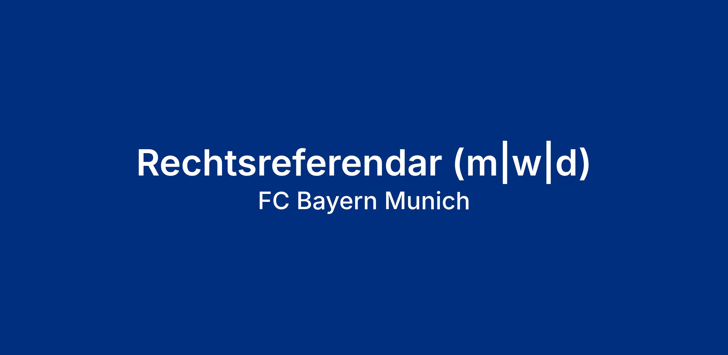 Der FC Bayern München ist einer der erfolgreichsten Fußballclubs der Welt und steht auch abseits des Fußballplatzes für Stabilität, Nachhaltigkeit, Erfolg und Qualität. Zur Verstärkung unserer Direktion Legal & Compliance suchen wir fürdie Zeiträum April bis Juni 2027einen Rechtsreferendar (m|w|d) im Rahmen der Wahlstationan unserem Standort an der Säbener Straße in München.