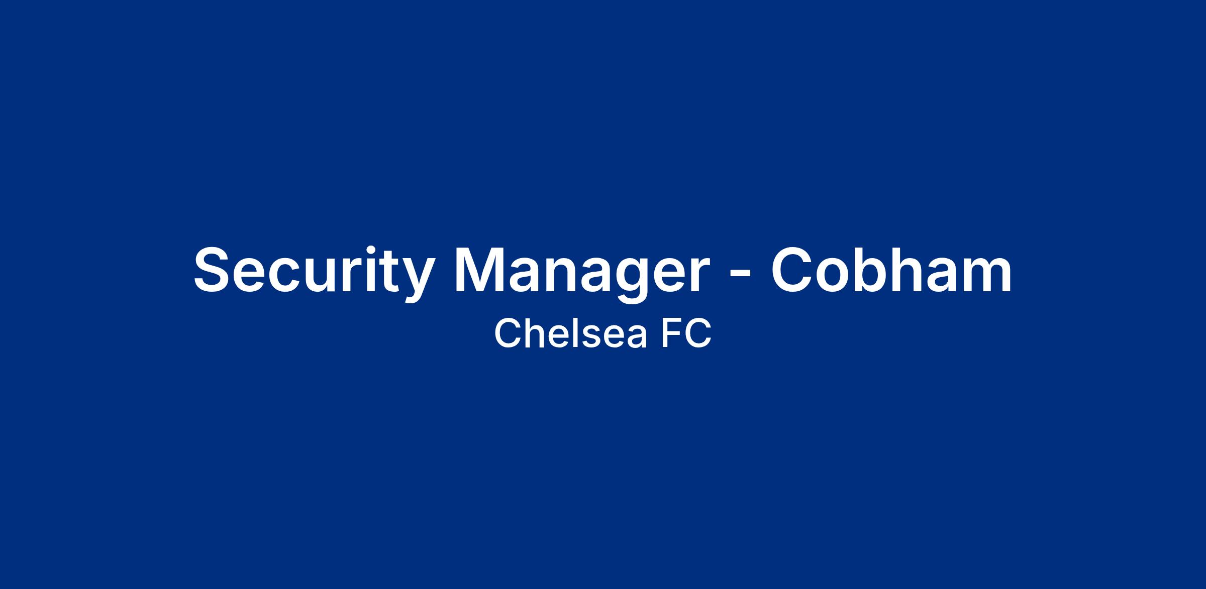 JOB TITLE: Cobham Security Manager DEPARTMENT: Security LOCATION: Cobham JOB FUNCTION: The Cobham Security Manager is the main security point of contact at the training ground, responsible for planning and delivering a 24/7 protective security operation...
