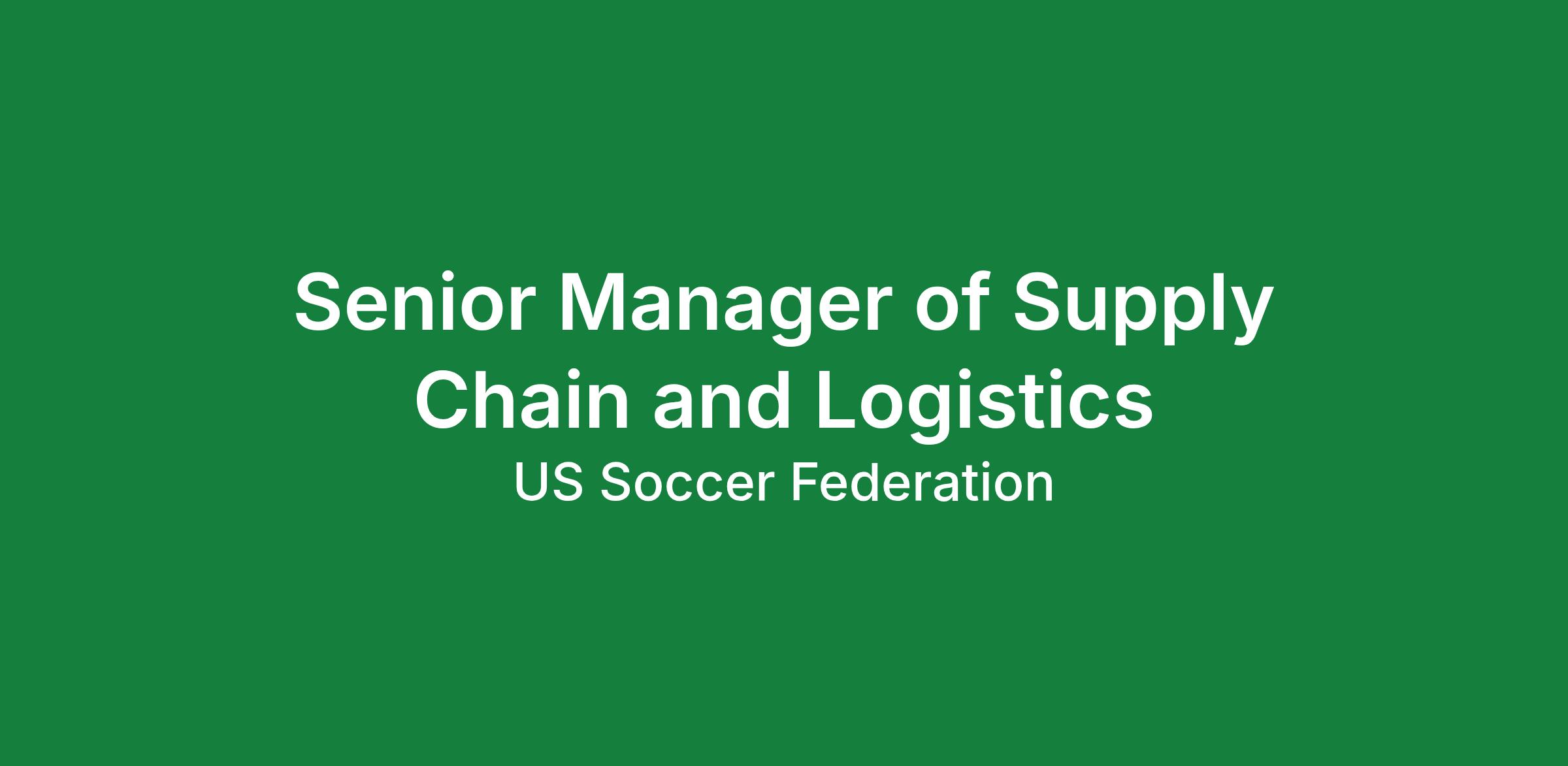 U.S. Soccer OverviewThe U.S. Soccer Federation exists in service to soccer. Our aim is to ignite a national passion for the game. Because we believe that soccer is more than a sport; it is a force for good.We understand the importance and the power of teamwork, on and off the pitch. That is why we work closely with our Federation partners and members, to inspire, support and guide every level of the game: from the grassroots to the National Teams. We want to bring soccer into every home and every community, right across America. Because we believe that soccer can transform lives like no other sport. Soccer can represent the best of U.S.U.S. Soccer is in a period of significant growth, with ambitious plans for U.S. Soccer in the near and far future. We are, therefore, looking for dynamic servant leaders to join us on this journey: in service to soccer. Applicants must be able to demonstrate visionary leadership, analytical decision-making, professional flexibility, and an empathic management style that builds bold teams and delivers globally significant results. Position Description The Senior Manager of Supply Chain and Logistics will pay a critical role during the design and opening phases of U.S. Soccer’s National Training Center (NTC) in Atlanta, Georgia. During the construction phase of the NTC, the Senior Manager of Supply Chain and Logistics will be responsible for overseeing the warehouse layout and design, consolidating and moving all warehouse/inventory operations to Atlanta, and creating a robust inventory management system and processes. Once the NTC is fully open and functioning, the Senior Manager of Supply Chain and Logistics will have oversight and management over the facility's Warehouses, Inventory Management, Transportation/Fleet and Purchasing functions. Primary Responsibilities The Senior Manager of Supply Chain and Logistics is responsible for overseeing all warehouse operations, including receiving, storage, inventory management, and order fulfillment. This role will ensure the efficient and effective use of warehouse space and resources to meet customer needs and organizational goals. Primary Responsibilities National Training Center (NTC) Construction Period Work closely with the Director of Equipment Operations to understand current Inventory, Equipment, Sports Medicine, High Performance, and Communications gear and operating locations across the Federation. Develop a detailed plan for consolidation, timeline, physical move to Atlanta and liquidation (if necessary). Monitor project progress, identify potential risks or delays, and implement mitigation strategies as needed Raise and elevate any non-compliance or on-going project issues promptly and implement corrective actions as necessary Provide regular updates on project status, milestones achieved, and any significant developments National Training Center Operating Period and Ongoing Duties1. Develop strategy for creation of and build-out of Warehouse, Inventory Control, Procurement and Transportation Teams.Develop job descriptions, policies, procedures and schedules Recruit, hire and onboard Warehouse, Inventory Control, Procurement and Transportation Teams Provide direct oversight, direction, management and coordination of all functional areas within the Department and promote excellent working relationship with all departments, with the primary purpose to serve our National Teams at the highest level Ability to foster a positive and inclusive learning environment, promoting a culture of collaboration, continuous improvement and professional development 2. Warehouse Operations Manage all aspects of warehouse operations, including receiving, storage, and distribution of goods. Develop and implement warehouse policies and procedures to ensure compliance with safety, security, and quality standards. Optimize warehouse layout and space utilization to maximize efficiency and productivity. Coordinate with other departments to ensure timely and accurate order fulfillment. Monitor inventory levels and oversee inventory control processes to minimize stockouts and overstock situations. Maintain accurate records of inventory transactions and warehouse activities. Implement process improvements to enhance warehouse efficiency and effectiveness. Ensure compliance with all relevant regulations and standards governing warehouse operations. Manage relationships with vendors, suppliers, and logistics providers to ensure timely delivery of goods. 3. Procurement Development and oversight of the Federation’s purchasing function, including sourcing, procurement, vendor management, and contract negotiation. Develop and implement purchasing strategies to optimize costs, quality, and supplier relationships. 4. Transportation Development and oversight of the Federation’s transportation team, including fleet management, routing, scheduling, and compliance. This role will develop and implement transportation strategies to optimize costs, efficiency, and customer satisfaction. 5. Other duties, functions, special projects and responsibilities as assigned by the CFO.