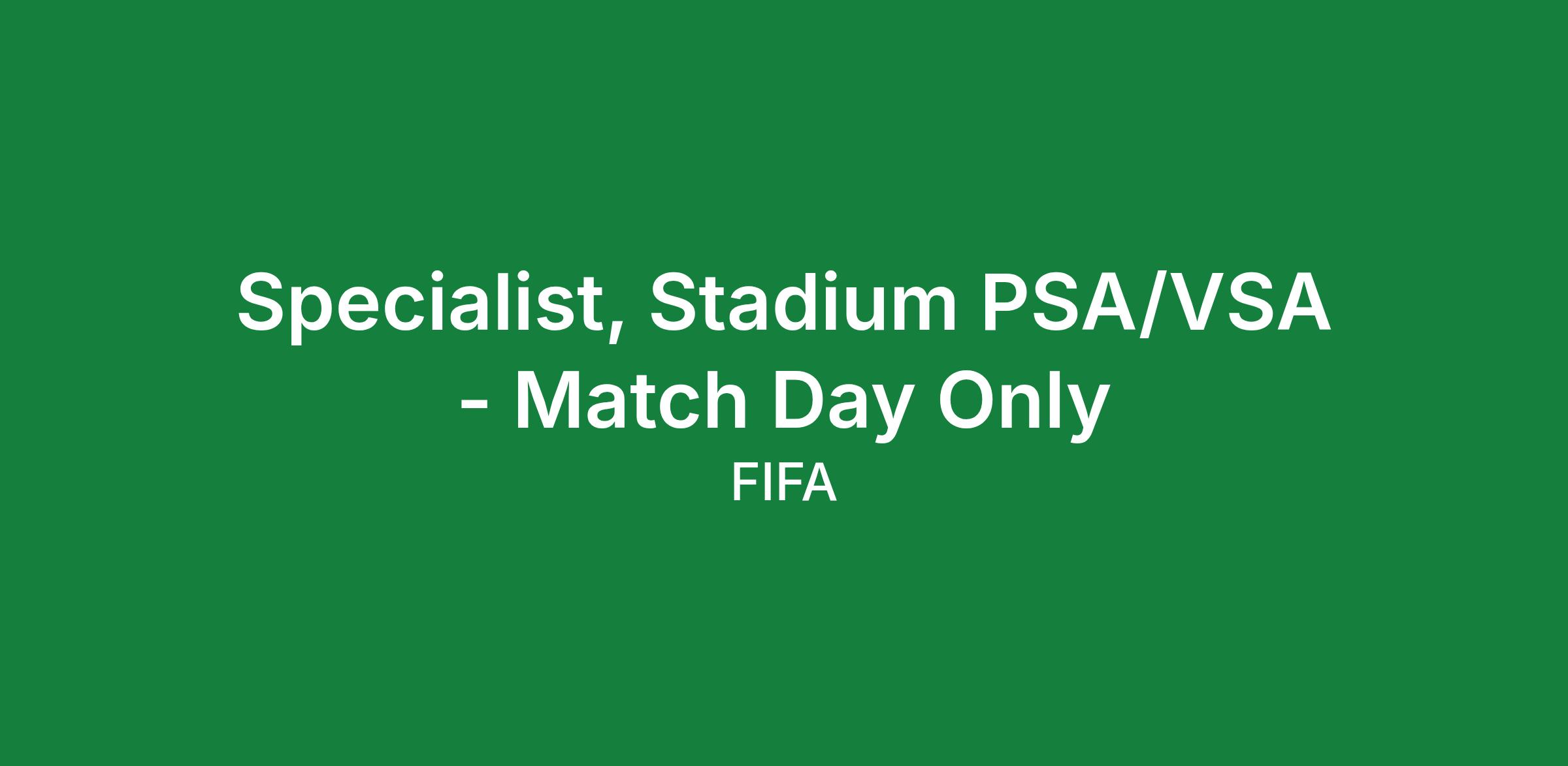 The Stadium PSA/VSA Specialist supports consistent implementation of FIFA Prohibited Items policy, Flags & Banners regulations, and Brand Protection measures within the stadium footprint.