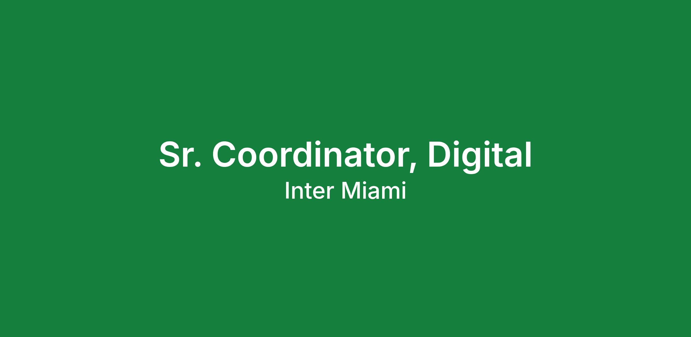 Inter Miami CF is an equal opportunity employer and all qualified applicants will receive consideration for employment without regard to race, color, religion, sex, sexual orientation, gender identity, national origin, age, marital status, protected veteran status, disability status, or any other characteristic protected by law.